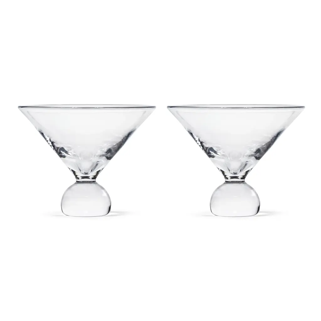A pair of deco-inspired Martini crystal glasses. Elegant long stems ensure the drink stays chilled. Featuring a vertical cut line for a classic, sophisticated look.Made from Lead-Free Crystalline Crystal.