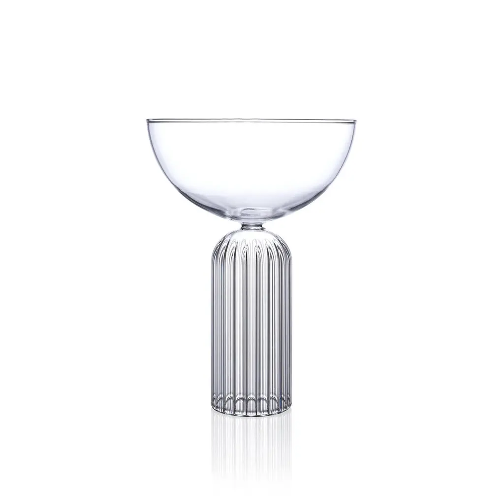 May champagne coupe glasses, set of twoA pair of Czech contemporary glass handcrafted is the perfect modern champagne glass. The May Collection is inspired by the lightness of the early summer month of May. This contemporary collection with a nod to the past is ideal for making each day special.Each piece is handcrafted by master glassblowers of fluted Borosilicate glass allowing for thermal resistance for a range of hot and cold applications. The collection is dishwasher safe.Designed by: Felicia Ferrone, 2018Handcrafted: Czech RepublicMaterial: Borosilicate glassType: GlasswareSize: 200 mL (6 fl oz)H. 14 cm (5.5in) ø10 cm.