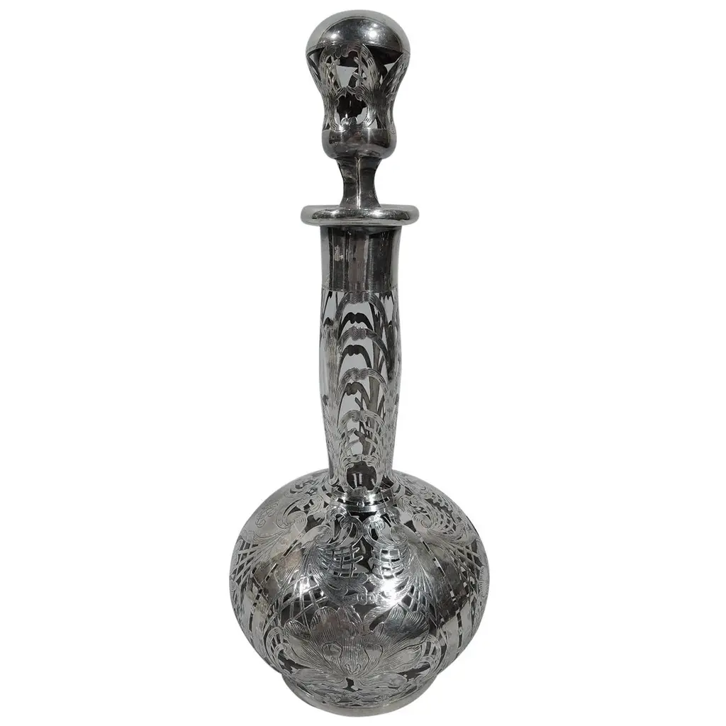 Pair Of Fine Antique German Silver And Cut Crystal Decanters