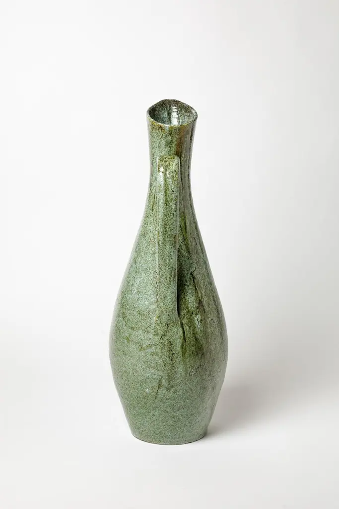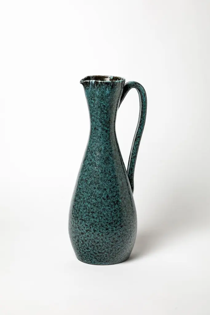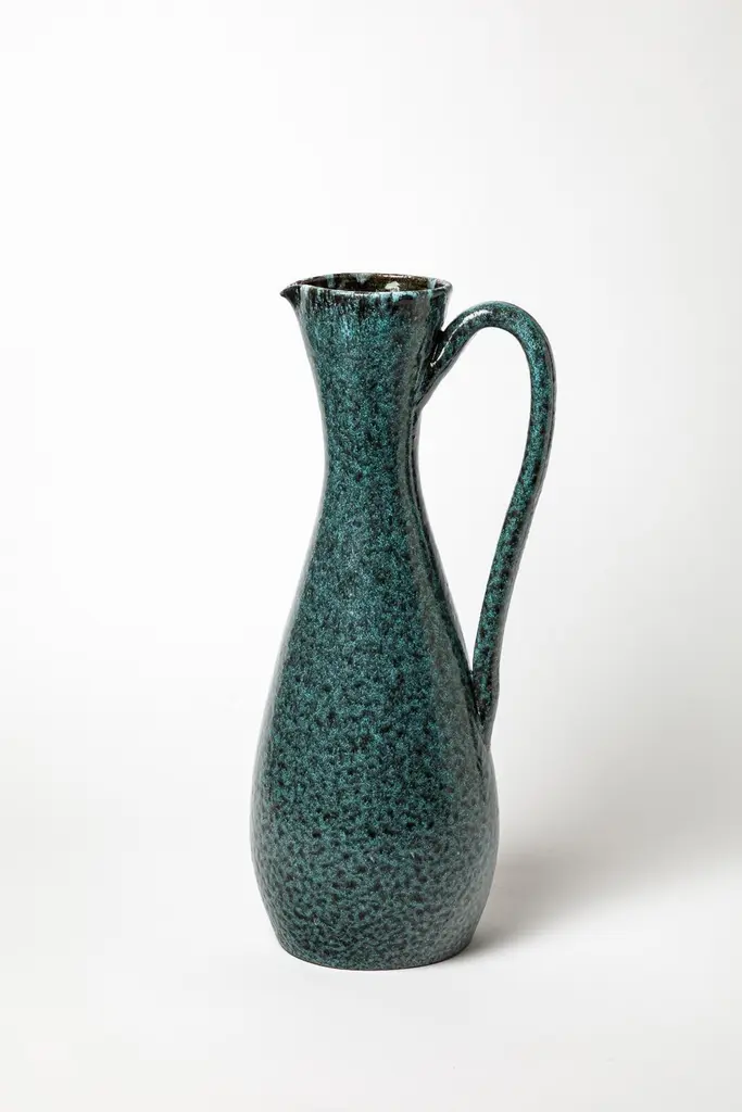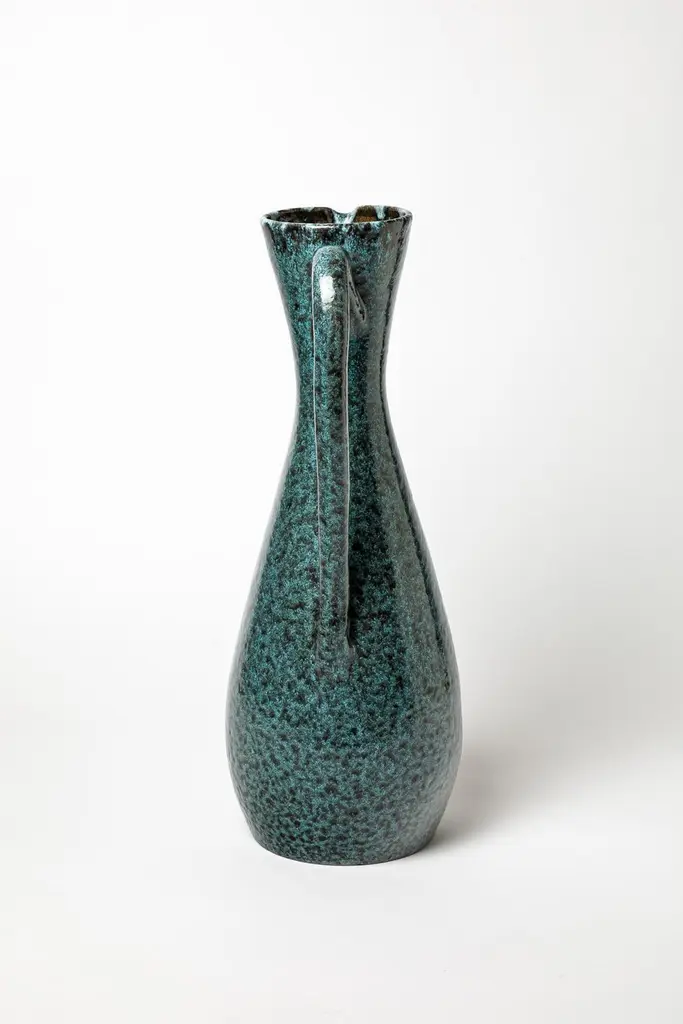 Pair of glazed ceramic pitchers by Accolay.Artist monogram under the base. Circa 1960-1970.H : 21.4 x 7.5 x 6.7 inches.H : 18.1 x 6.3 x 5.9 inches.