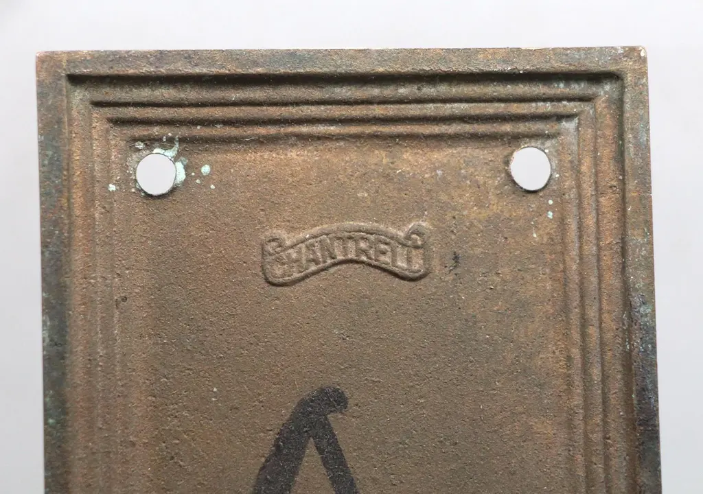 Cast bronze Chantrell signed push plates with a gold washed finish. Priced per pair. The exact date of creation is unknown. The dimensions are Each 12 in. H x 3 in. W x 0.375 in. D.