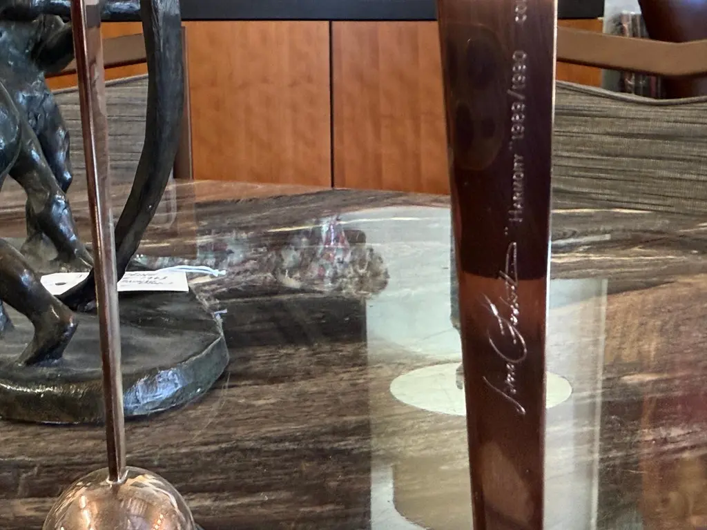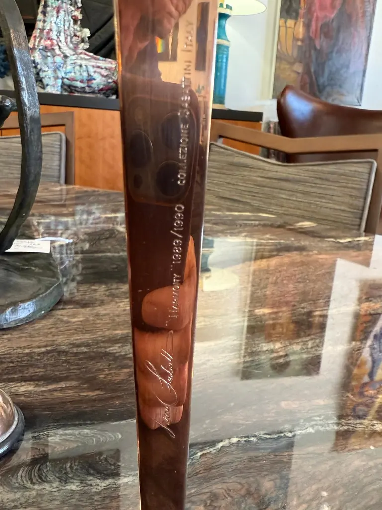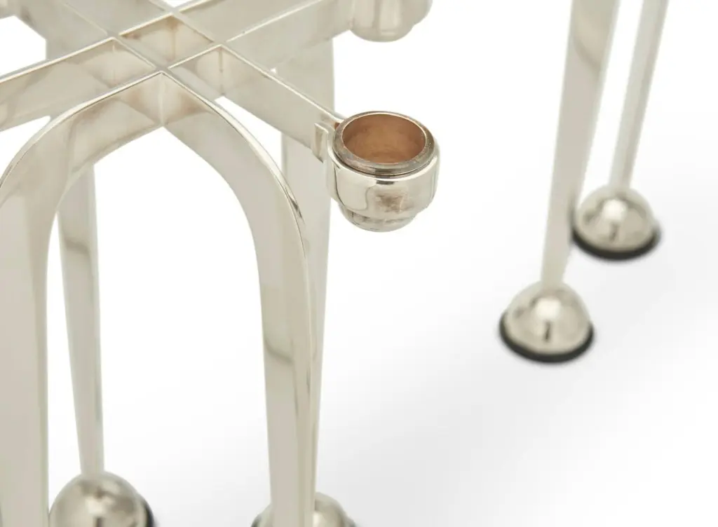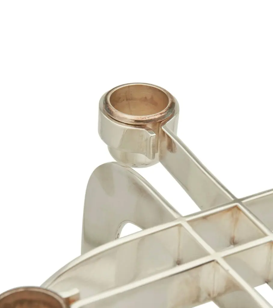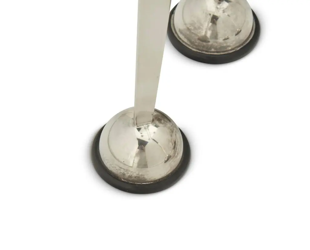 A beautiful pair of Lino Sabattini post modern silver plated candlesticks from his Harmony series of 1989/90. They are marked on the side of one upright. they each have four candleholders. An elegant design and unusual to find a pair intact. As with all silverplate these will likely need polishing after we ship them as the handling and packing will marks them with fingerprints. They are in good condition with minor surface scratches and minor imperfections.