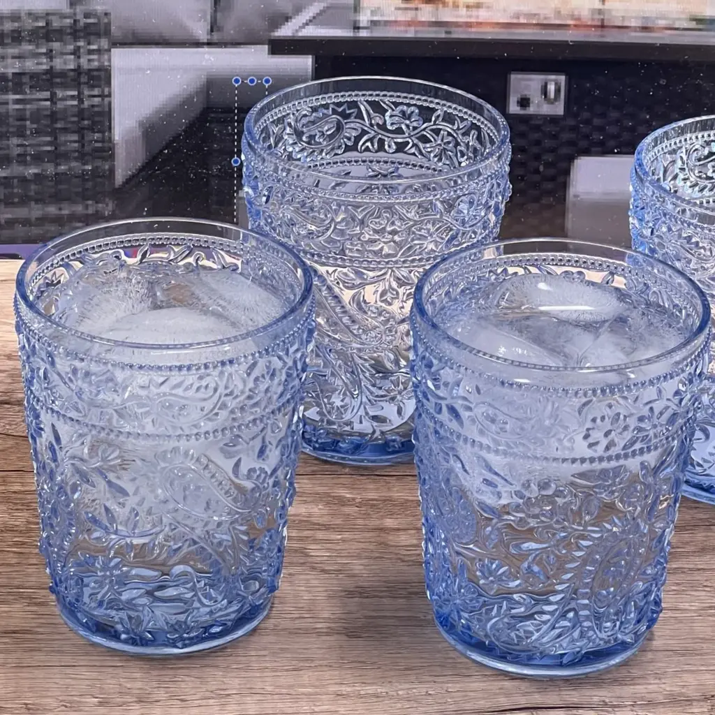 Paisley Acrylic Glasses Drinking Set Of 4, Bpa Free, Blue, 13oz
