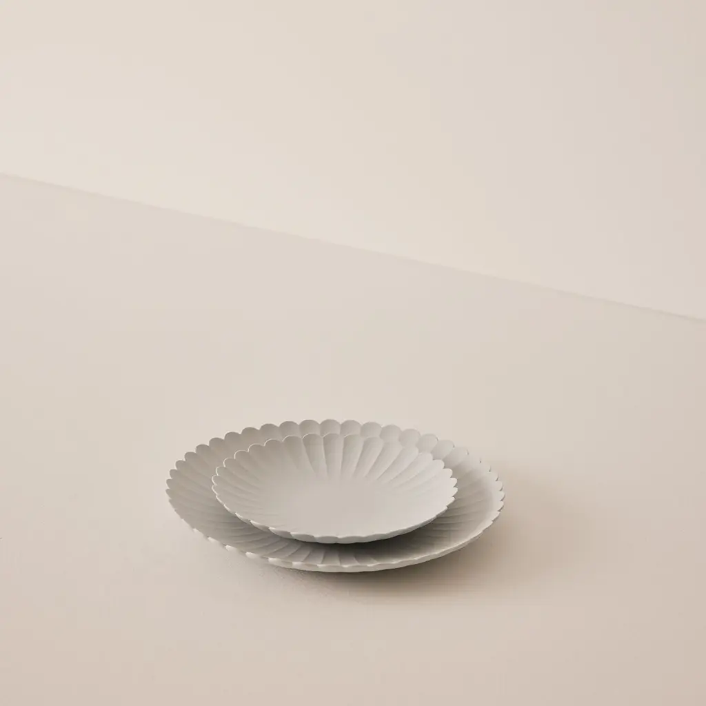 When the day calls for special dinnerware, trust the elegant 1616 / Arita Palace Plate to add a regal touch to your dinner table. Exclusively designed by Teruhiro Yanagihara for the Palace Hotel Tokyo, this exquisite plate is inspired by the auspicious Chrysanthemum flower — the emblem of Japan's imperial family. It is delicately hand-crafted in the ancient town of Arita using a dense clay of crushed stone, which gives it its remarkable durability. A timeless matte light gray tone tastefully complements any appetizers, small meals, or dessert.