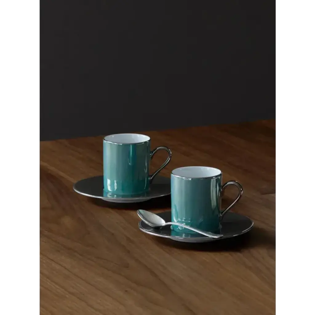 Palazzo Coffee Cup & Saucer 3.5 Oz Sea Green/platinum