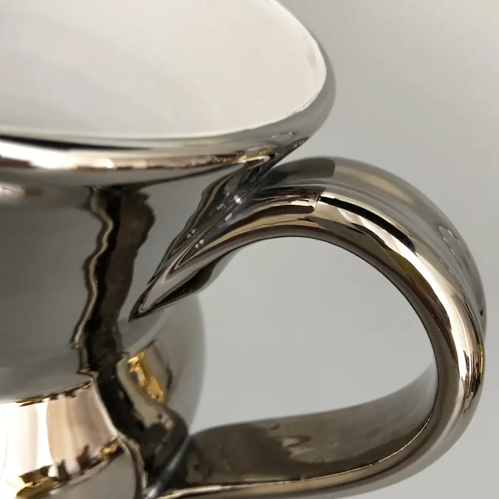 A jug liter inspired by a traditional Northern-Italy shape settled in the last 3 centuries. Made of terracotta, completely hand made in white, with application of handle, enamelled in white and externally finished with soft bristle brush in fine ceramic special colours before its last firing. Its capacity may be customised, adding short text on the bottom.