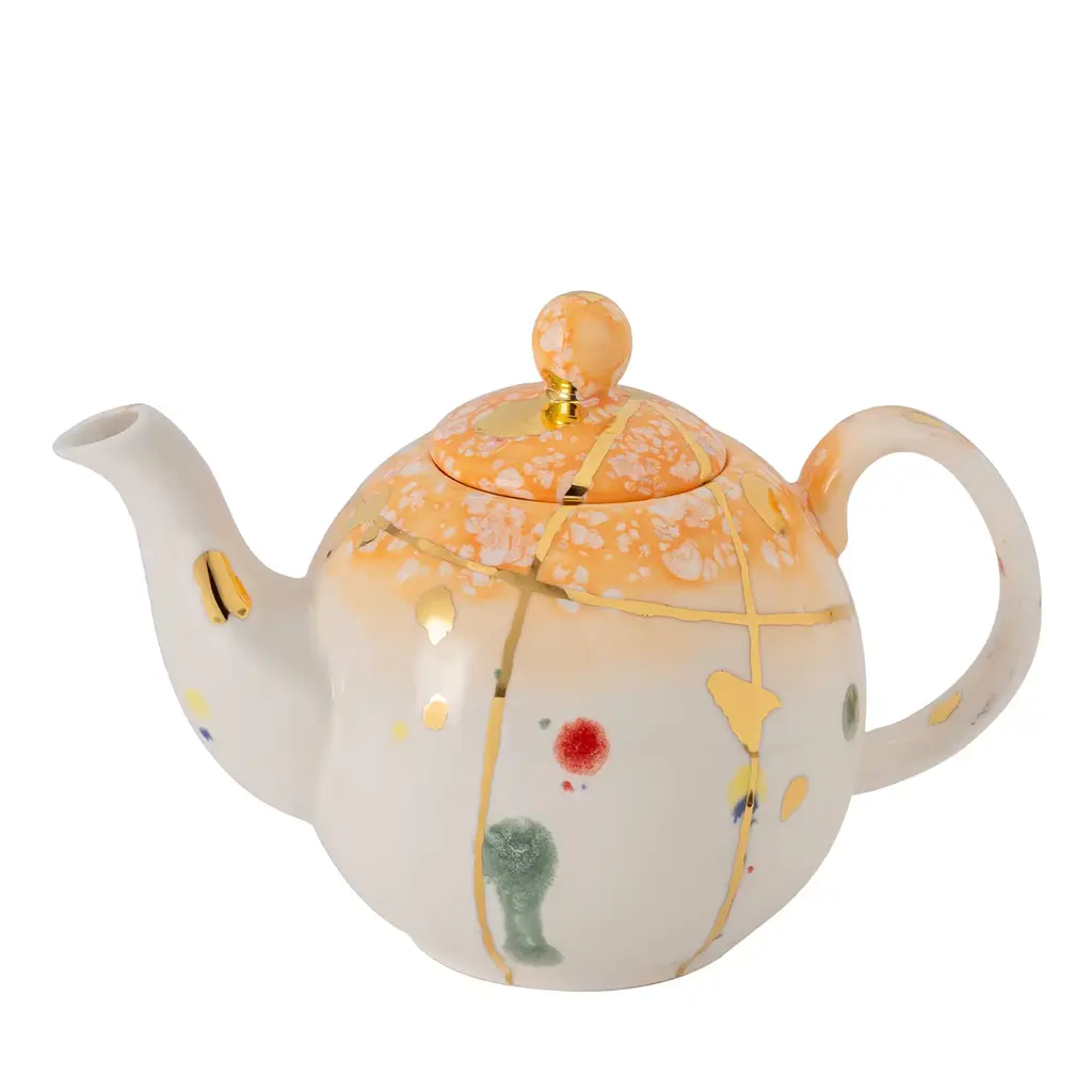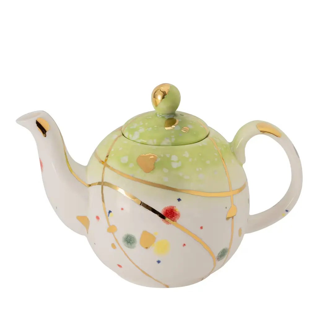 Luxurious and cheerful, the Florida collection was launched in 2023. It is inspired by the American state famous for its strong character and colorful heritage. Each line is characterized by a color. They are inspired by some of the most famous places in Florida, recalling its beaches and its sunsets, stretching between the Gulf of Mexico and the Atlantic Ocean.Palm Beach pink, Miami orange, Amelia green, Naples yellow, Crystal tourqoise, Islamorada lavender.Each plate is decorated with a lightly colored center interspersed with multicolor dots. The rim is richly decorated golden leafs. The charger, tea and coffee cups have are decorated with a golden net- The dessert plates and teapots have a distinct design characterized by golden rays crisscrossing their surface.