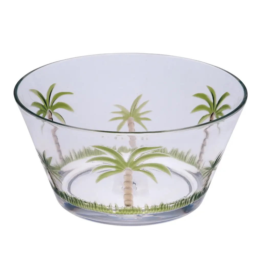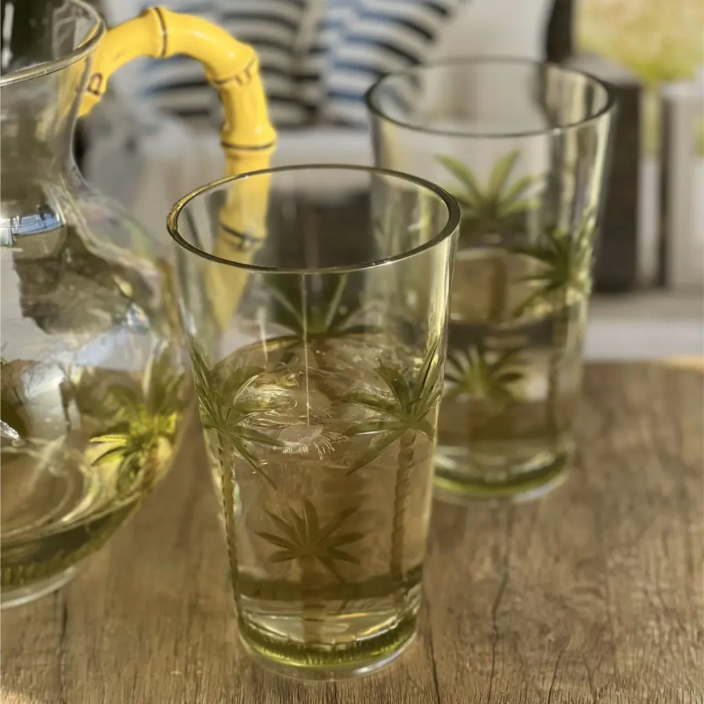 Palm Tree Design Acrylic Hi Ball Glasses Set Of 4, 20oz, Clear Plastic, Bpa Free