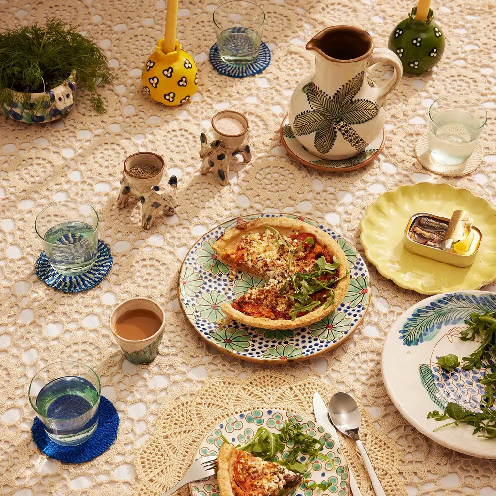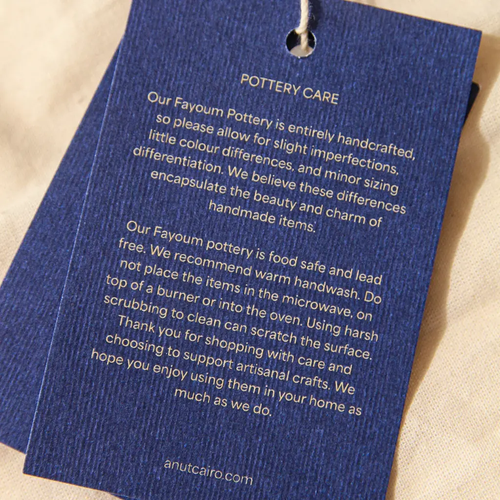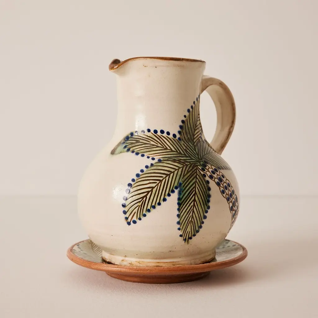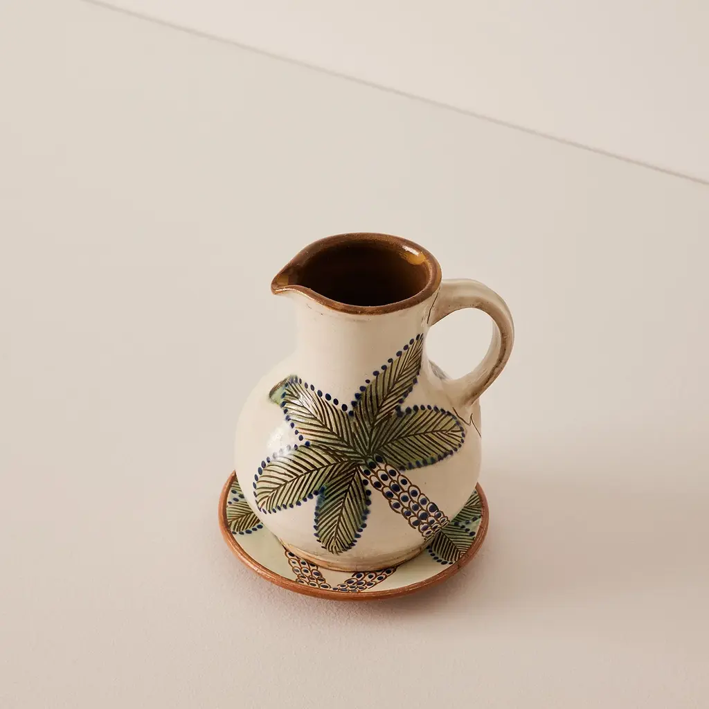 Whether you're putting together an alfresco soiree or a tablescape inspired by nature's beauty, the ANŪT Palm Tree Jug is sure to add the perfect touch. Carefully hand-crafted by master potter Mohamed Mahmoud in the luxuriant Egyptian oasis of Fayoum and deeply rooted in Egypt's heritage, it references palm groves dotted along the Nile as an homage to the land. The jug comes with a small plate to catch water drops and prevent humidity from passing the unglazed clay at the bottom.* ANŪT Cairo products are entirely handcrafted, so slight imperfections, color variations, and minor size differences may occur.