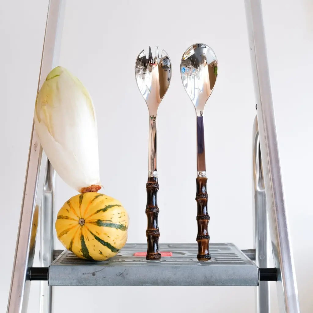 A celebration of natural materials and refined style, the Panda 2-Piece Salad Cutlery Set from Sabre Paris brings a touch of worldly charm to your table. This beautiful set is the ideal addition for serving large summer salads and other favorite dishes with a touch of finesse. The finely crafted styling stands out with its genuine bamboo handles, which offer a warm, organic feel and a beautiful contrast to the high-quality stainless steel. A fusion of contemporary design and natural elegance, it’s a sophisticated and inviting set for effortless entertaining. Highlights: