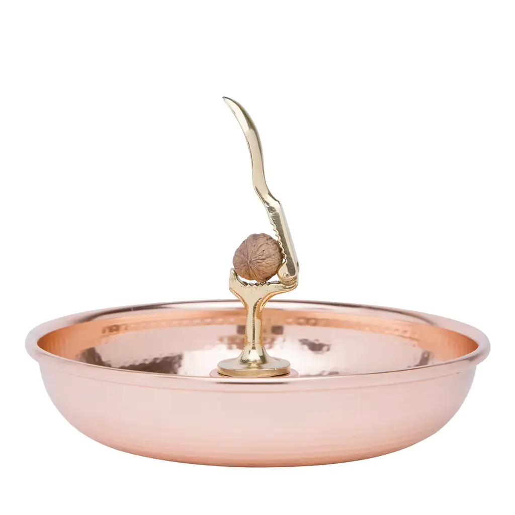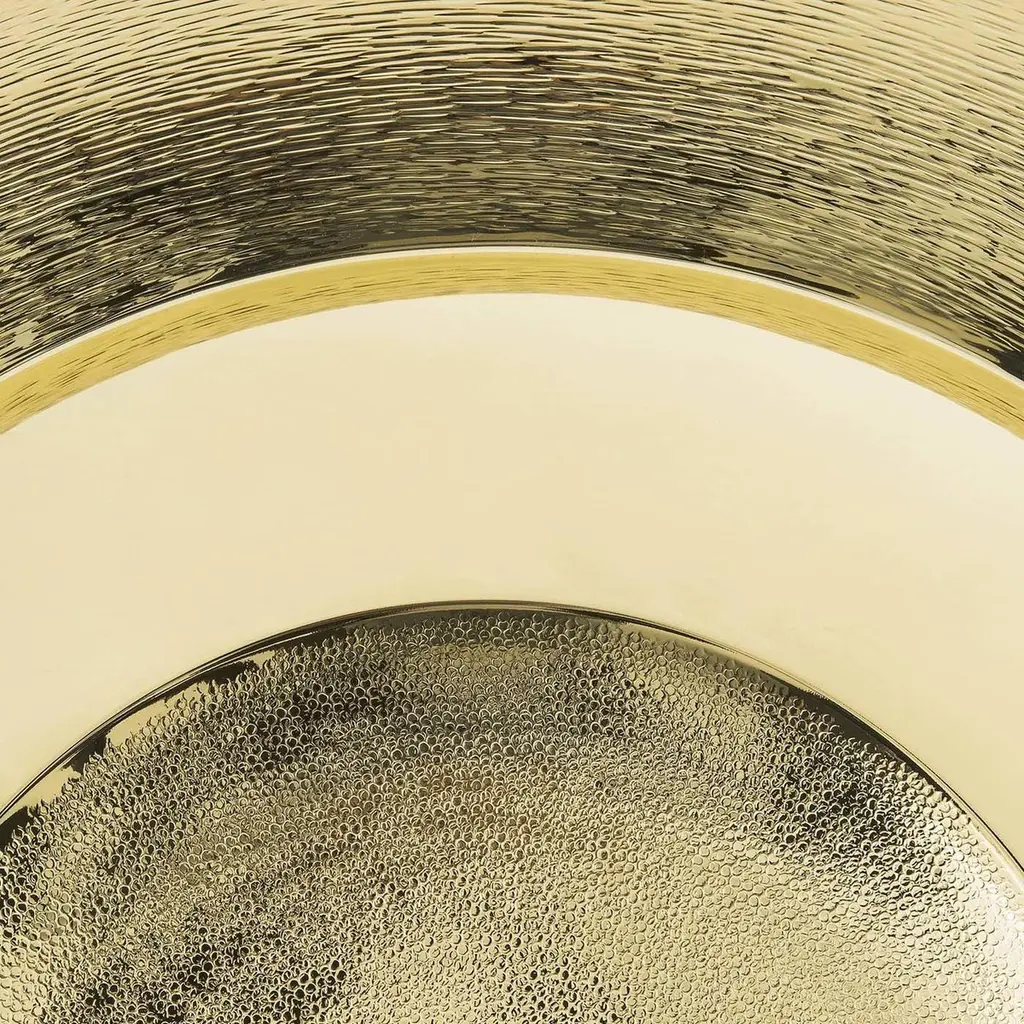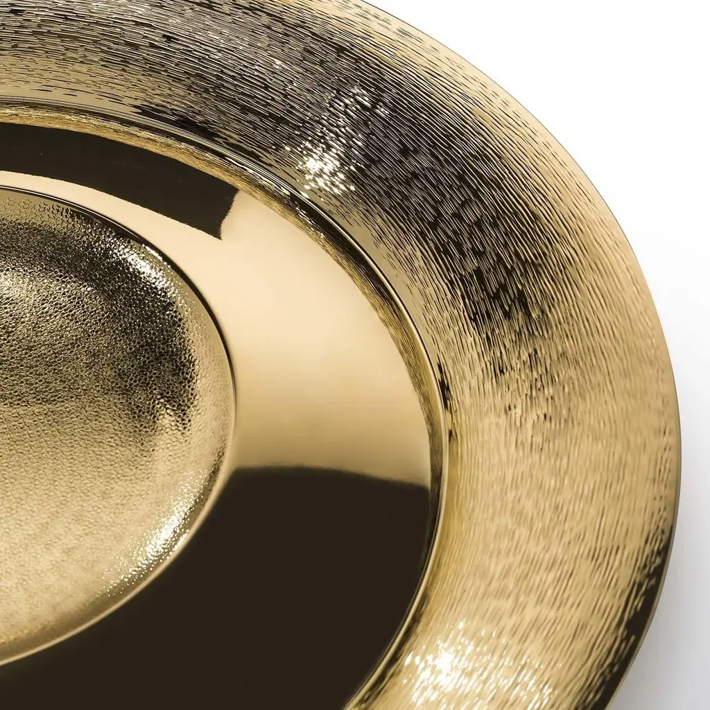 Crafted of brass with a gold-plating, this elegant bowl exemplifies traditional craftsmanship and innovative design aesthetic. The round plate features a flared rim sloping towards the center of the plate to create an undulating surface alternating between concave and convex sections. Each section boasts alternating textures, from smooth to brushed, and mirror. Named after Pantelleria, an island off the coast of Sicily, this luxurious plate is a timeless work of art that will enrich any decor. Available also silver plated. Part of a numbered series.