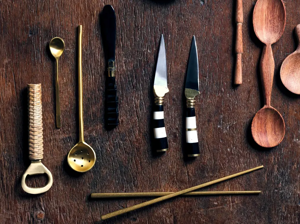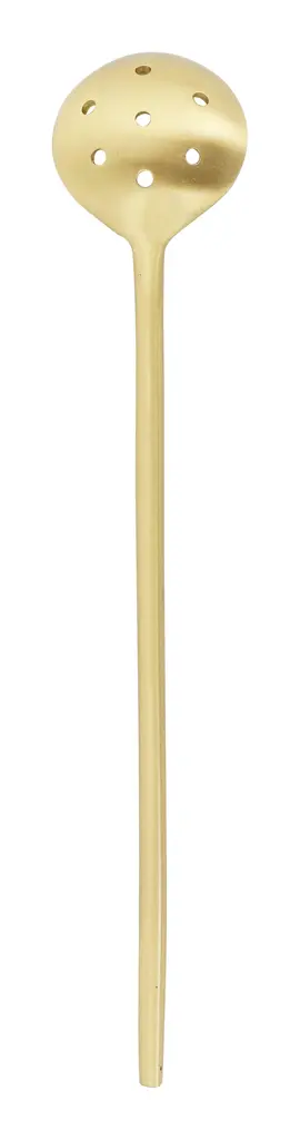 Olive lovers rejoice because the perfect utensil is here — our slotted Paolo Olive Spoon. Crafted from steel with a brushed brass finish, this chic little accessory pairs a long, slim handle with a round perforated bowl, which allows you to scoop and strain with ease. The perfect addition to any serveware collection, we love our petite Paolo Spoon for snacking, serving up table olive during cocktail hour or spooning out garnishes at the bar. It would also be great for neatly retrieving the teabag from your daily cuppa. •steel•brushed brass finish •hand wash only Dimensions •8" long x 1.25"D
