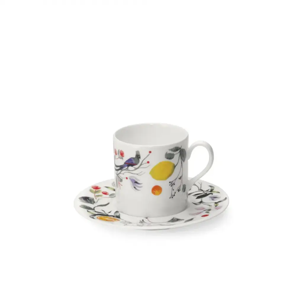 With the new series PARADISE, the Swedish illustrator Lina Ekstrand, who has already designed the WUNDERLAND series for Dibbern, takes us to an enchanting Garden of Eden with fresh oranges and lemons, just-opening flower buds and an exotic animal world. The luminous Fine Bone China material makes the imaginative and playful design shine with particular intensity.