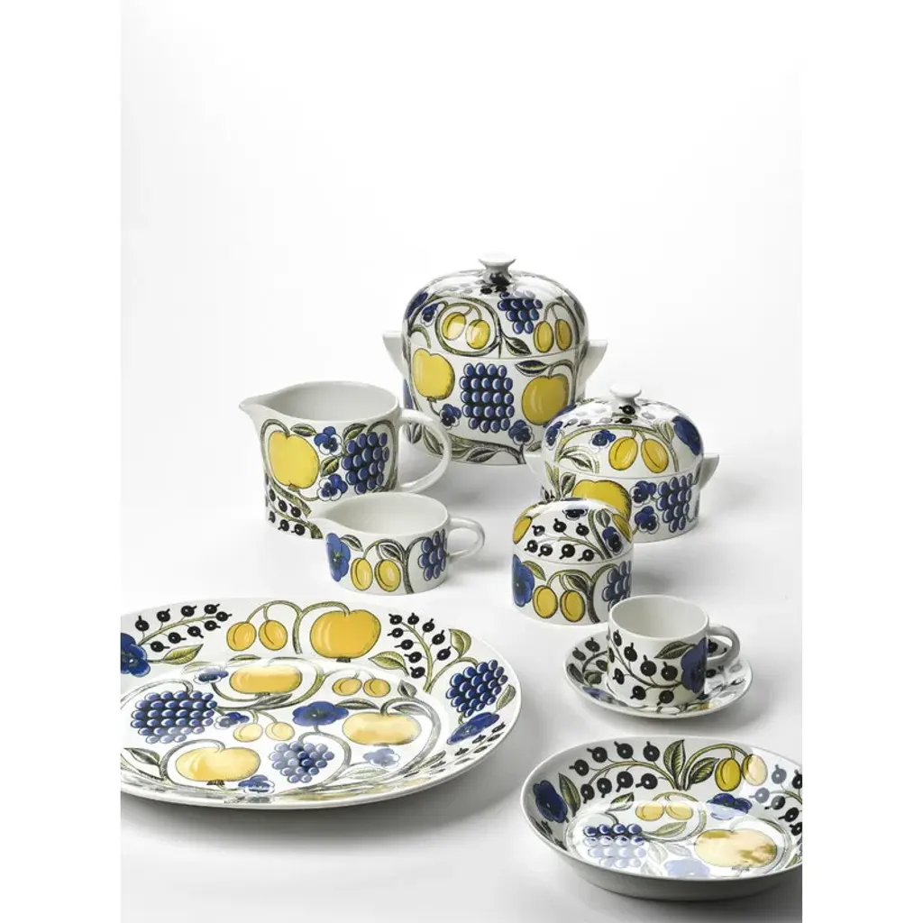 The Paratiisi cup by Arabia is adorned with Birger Kaipiainen's yellow-blue theme that gives a timeless, summery spirit for the abundant floral pattern. Arabia’s Paratiisi, Finnish for paradise, was designed by Birger Kaipiainen, the award-winning Finnish ceramic artist. The tableware features a simple and beautiful shape complemented by a rich design of fruits, violets and black currants. Created in 1969, Paratiisi is still one of Finland’s most beloved tableware classics.