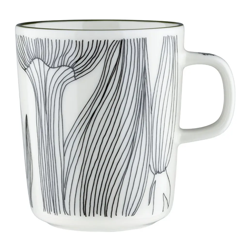 The Paratiisi mug by Arabia is adorned with a black and white theme that gives a clear, graphic touch for the abundant floral pattern. Arabia’s Paratiisi, Finnish for paradise, was designed by Birger Kaipiainen, the award-winning Finnish ceramic artist. The tableware features a simple and beautiful shape complemented by a rich design of fruits, violets and black currants. Created in 1969, Paratiisi is still one of Finland’s most beloved tableware classics.