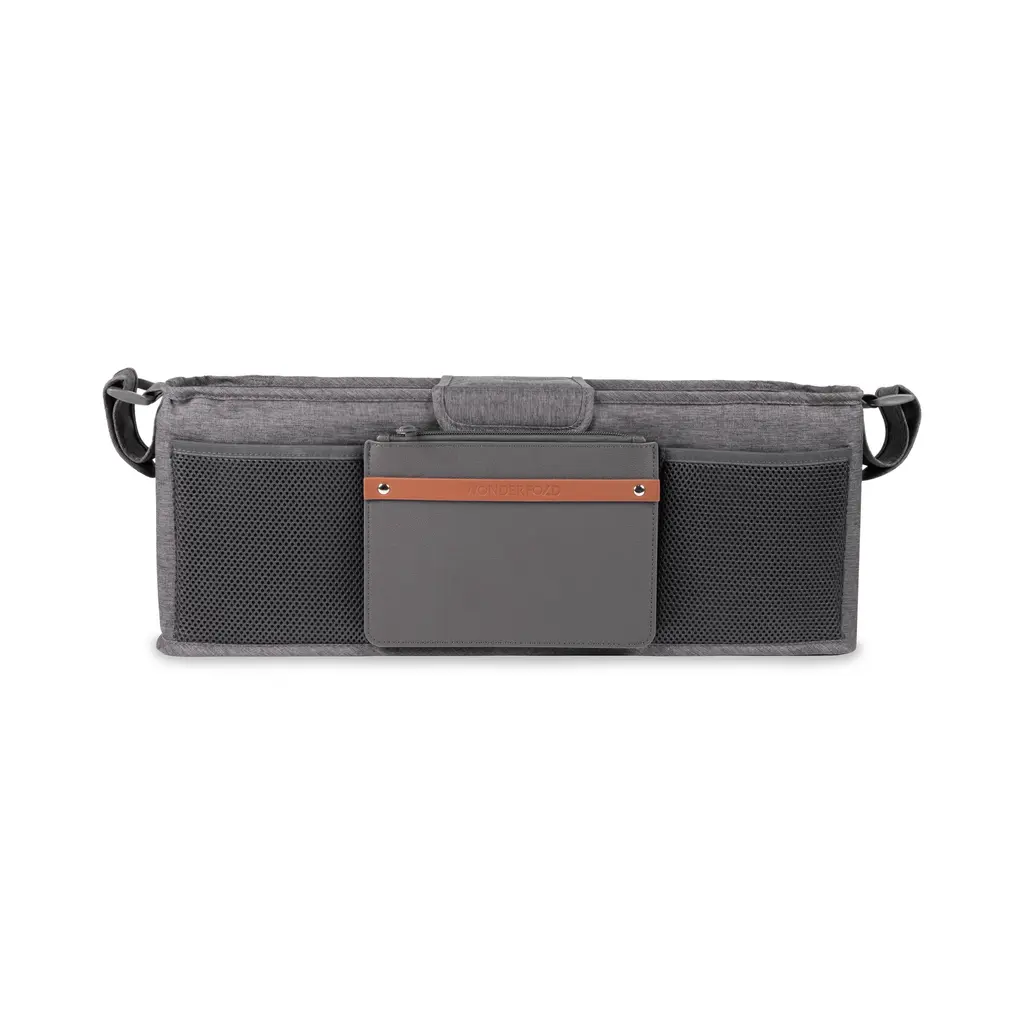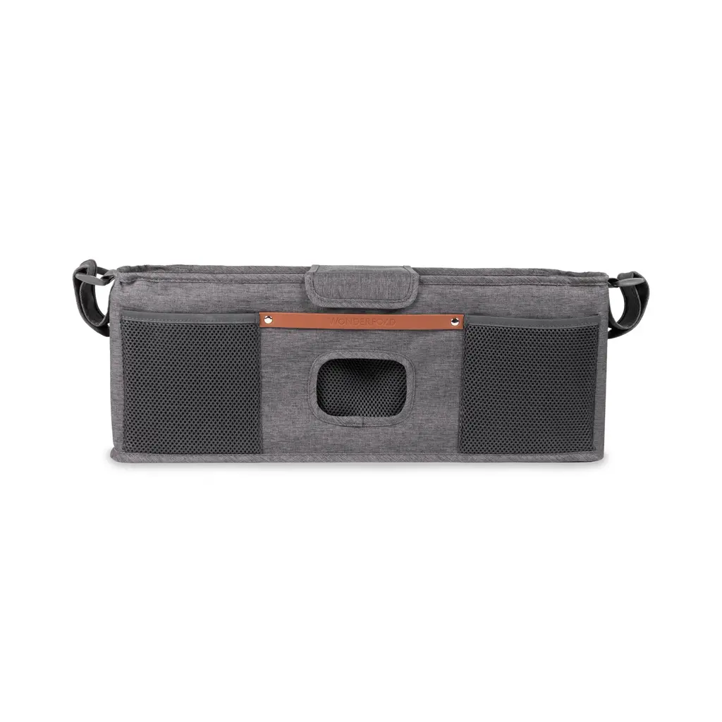 Universal Parent Console - Compatible with Most Strollers & Wagon Brands STORE EXTRA BELONGINGS - Bring snacks and drinks with you and keep your personal belongings secure in this convenient baby stroller organizer. Note: Cup not included HOOK-AND-LOOP STRAPS - Easily attaches to stroller handle for convenient access and makes this a convenient stroller parent console DEDICATED BABY WIPES HOLDER - for quick clean-ups, plus 2 external storage pouches for your baby necessities STORAGE POUCH COVER - Keeps personal belongings secure while you're out REMOVABLE CLUTCH AND SHOULDER STRAP - For easy carrying and transportation, the WONDERFOLD Parent Console is a top choice for stroller accessories