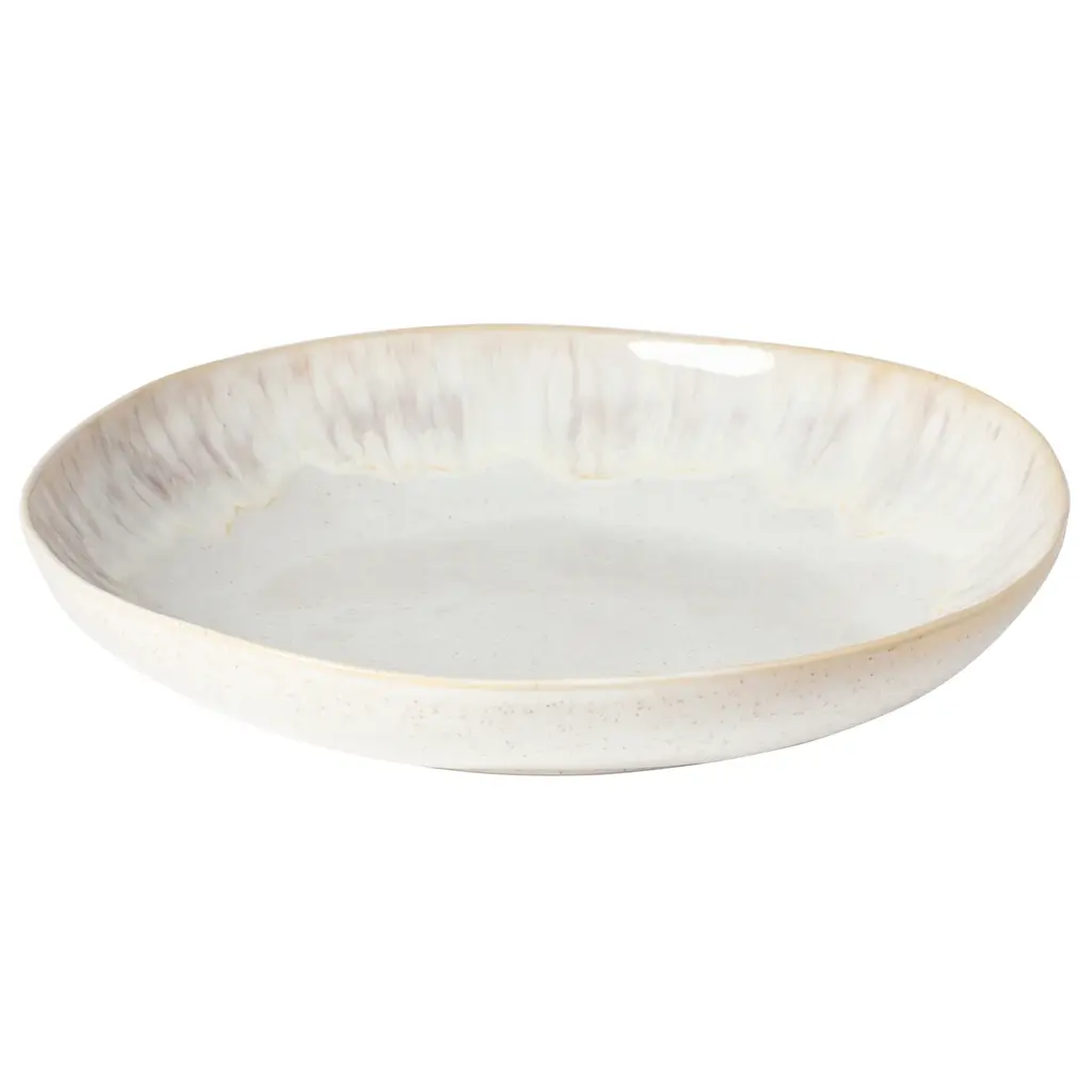 The organic curves of the Eivissa Collection are mirrored in its artful, reactive glaze-work featuring natural patterns of sandy beige and ocean blue. From pasta bowls to dinner plates, each stoneware piece is made by expert artisans in Portugal, and is safe for use in the microwave and dishwasher.