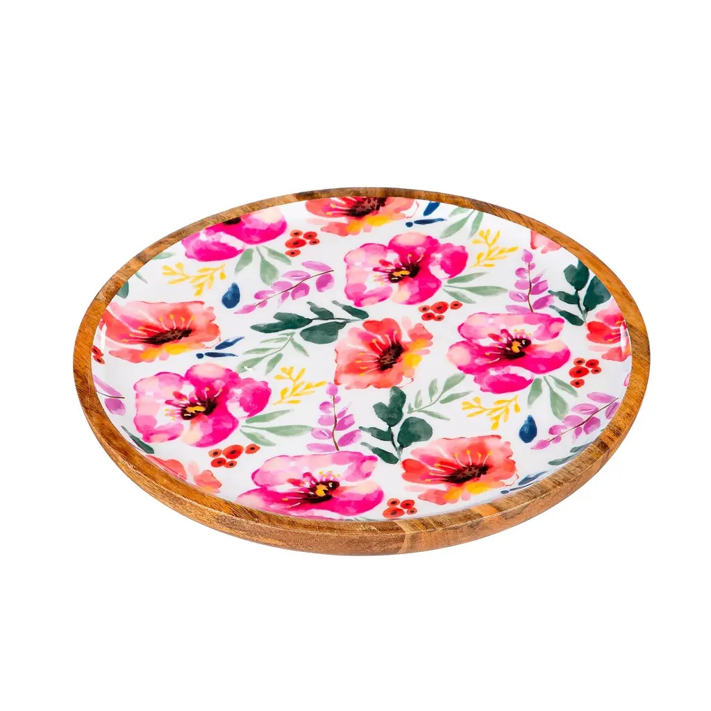 Add a pop of charm to any dining experience with this beautifully designed platter. Crafted from high-quality mango wood, this piece is made to last year after year. It features a stunning floral design that adds a touch of elegance to any dinnerware. Whether hosting a dinner party, enjoying a casual meal or simply displaying it as a decorative piece, this plate is sure to bring a smile every time it’s used. It is perfect for everyday use, picnics, parties, and outdoor gatherings. Hand wash for safe cleaning.