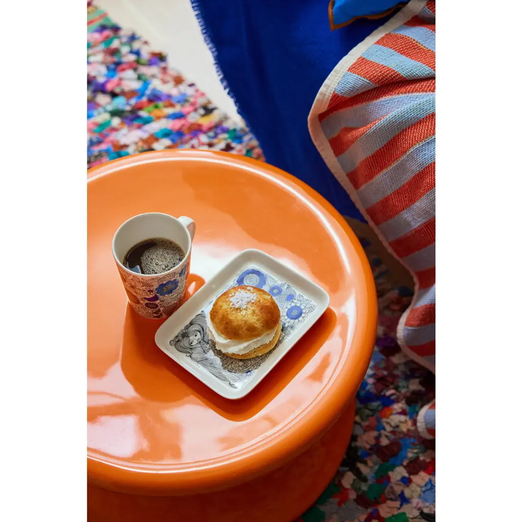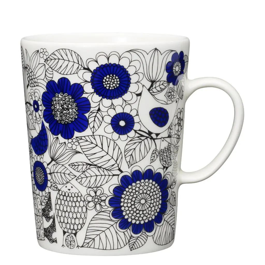 Arabia's Pastoraali mug is adorned with the organic pattern Esteri Tomula designed in 1965. Pastoraali, featuring human characters among flowers, leaves and birds, was given a deep shade of blue since the new silk screen-printing technique allowed the use of bright colors. The rich pastoral landscapes have been printed on white, clean-lined ceramic tableware. The large, 16.91 fl oz (5 dl) giant mug is a great choice for various beverages, from morning coffee to afternoon tea or warming cocoa in the evening.