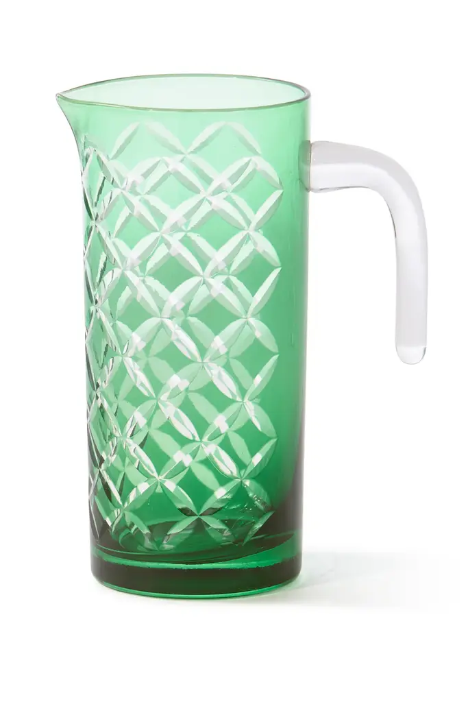 Patterned Green Glass Pitcher | Pols Potten Cuttings