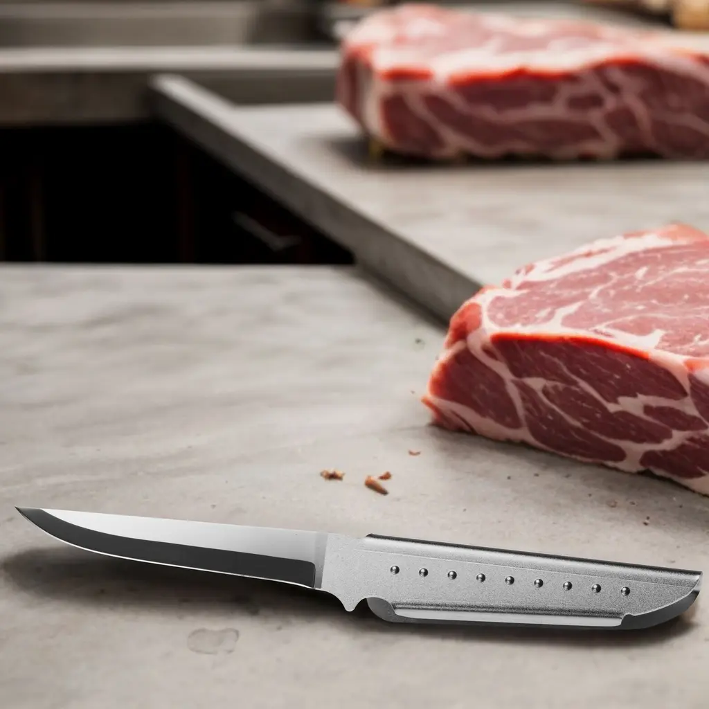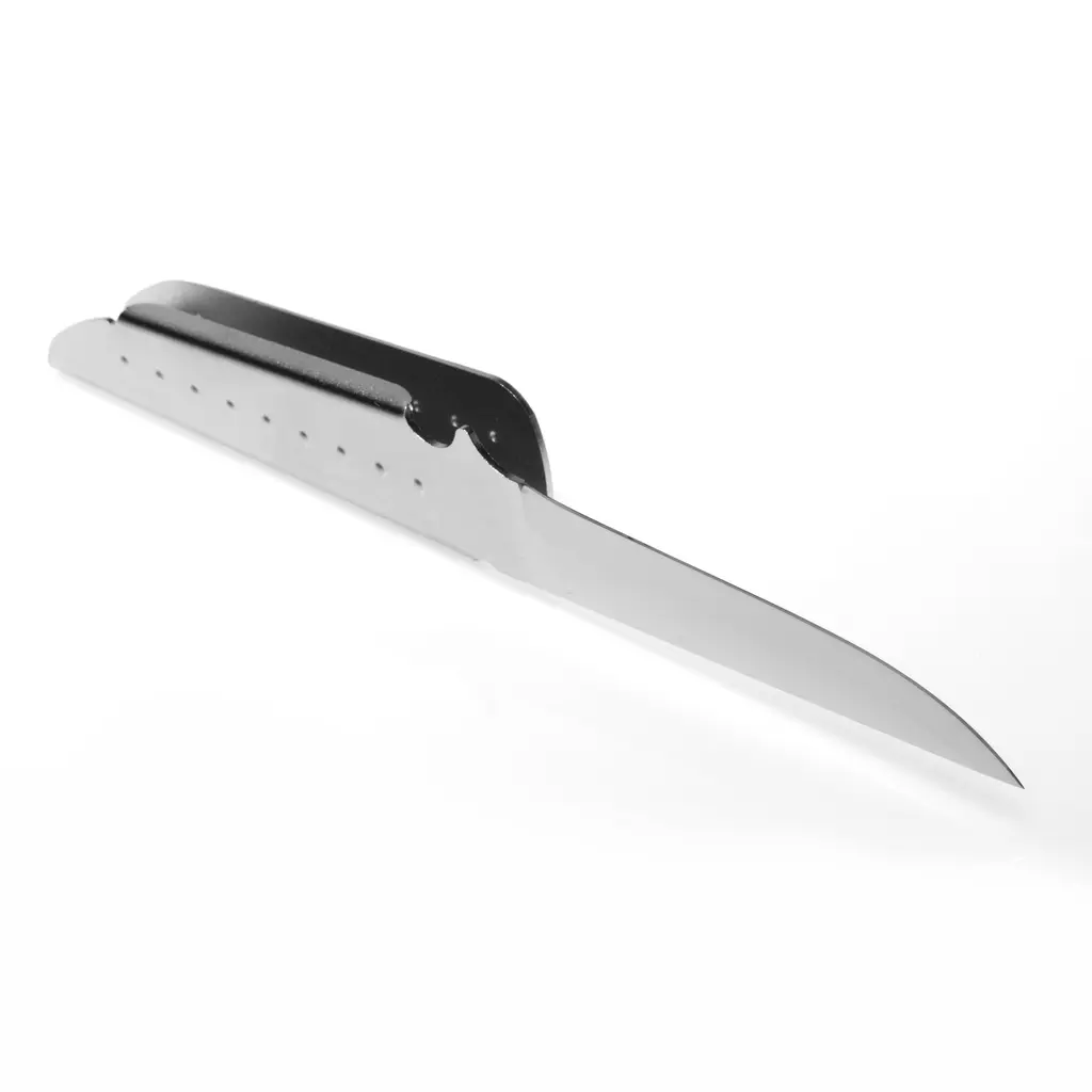 The Boning Knife is an essential kitchen tool, suitable for chefs and home cooks alike, designed specifically for deboning, filleting, and trimming meat and fish. Crafted with precision and innovation, it seamlessly blends tradition with modern technology, ensuring optimal performance in various culinary tasks. Notable features include its ergonomic handle, which offers a secure grip and prevents rotation, and its strategically positioned blade for enhanced cutting precision. Constructed from a single piece of material, the knife is both durable and hygienic, with a thin, hand-sharpened blade for precise cuts. Additionally, it comes with a protective sheath for safe storage and hygiene, making it indispensable for achieving professional-quality results in the kitchen.