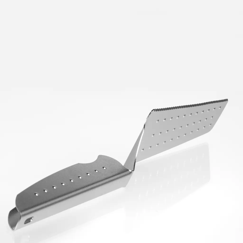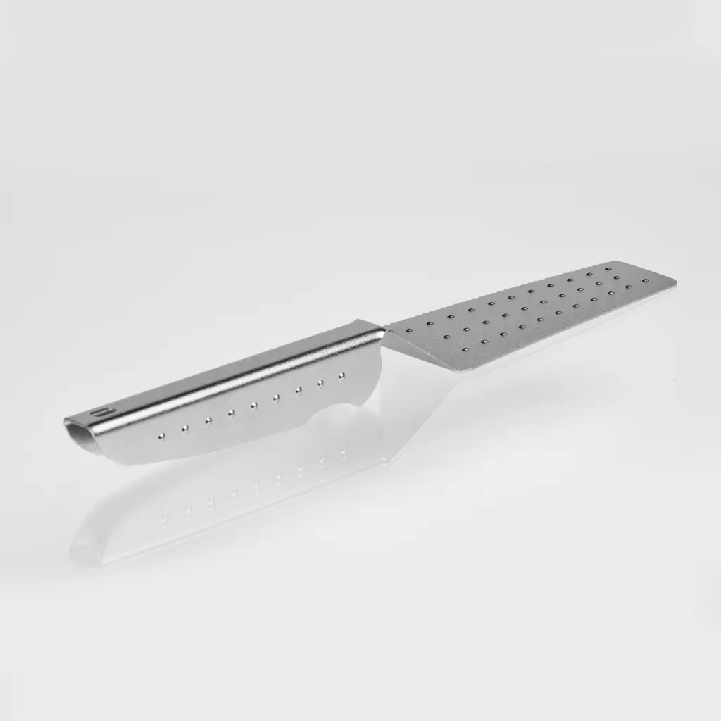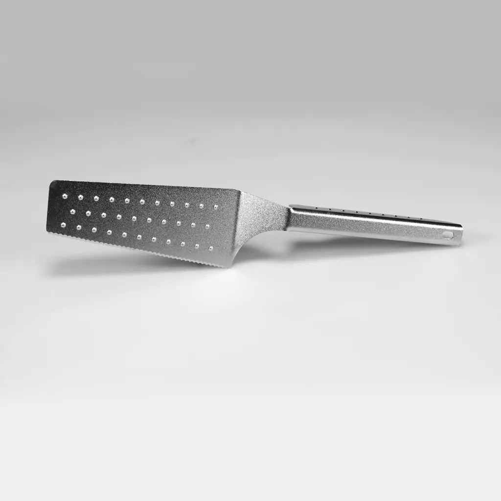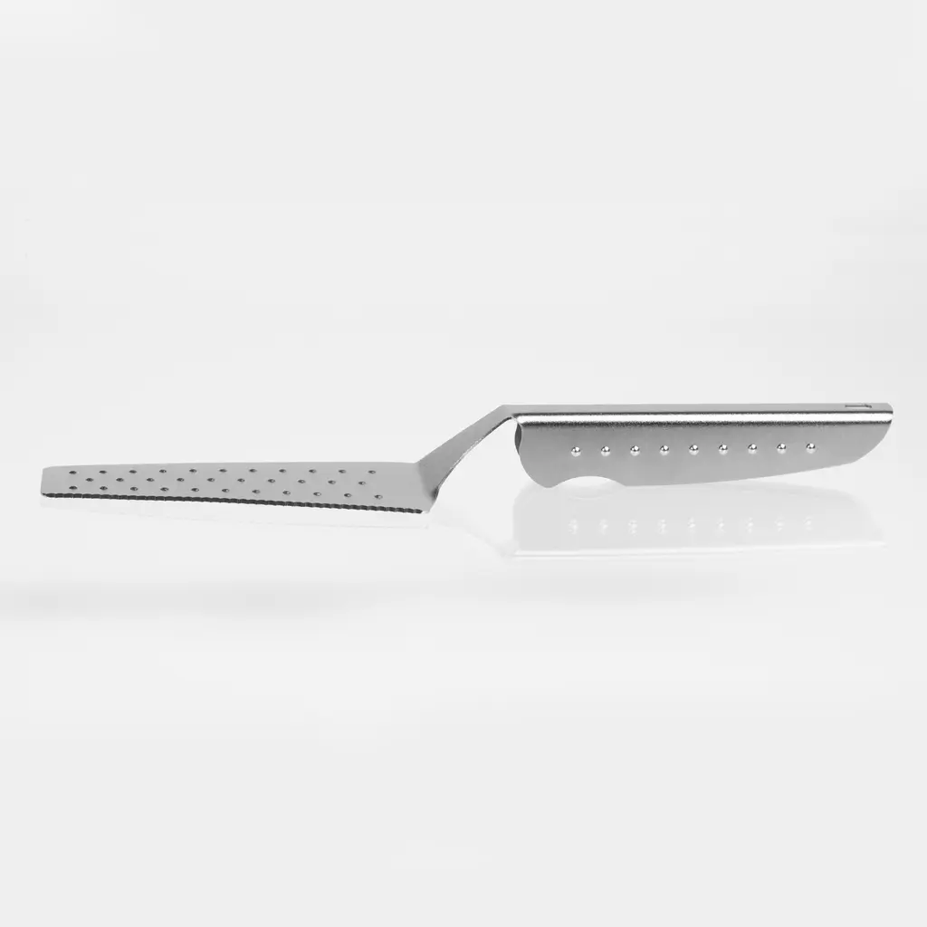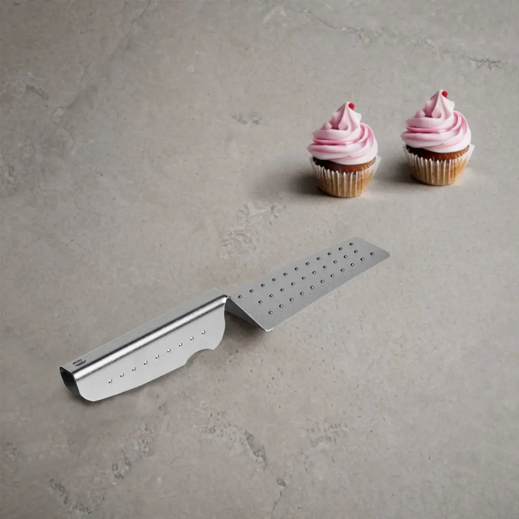Tiziano Paulon’s cake server is an essential tool for effortlessly portioning and elegantly serving slices of cake. Crafted with precision and exquisite design, this server is a must-have addition to any kitchen. Constructed from durable stainless steel AISI 430, the server boasts a body meticulously formed from a single piece of laser-cut stainless steel. This innovative construction ensures exceptional hygiene, sturdiness, and lightweight handling, making it ideal for both professional and home use. Plus, without the need for plastics, coatings, or welds, it maintains its integrity over time. Its serrated blade offers precise cutting, effortlessly gliding through cakes of varying textures. With its sleek design and thoughtful construction, this cake server elevates the presentation of desserts, adding a touch of sophistication to any occasion. Whether serving at a formal gathering or a cozy family dinner, Tiziano Paulon’s cake server ensures every slice is served with elegance and finesse.