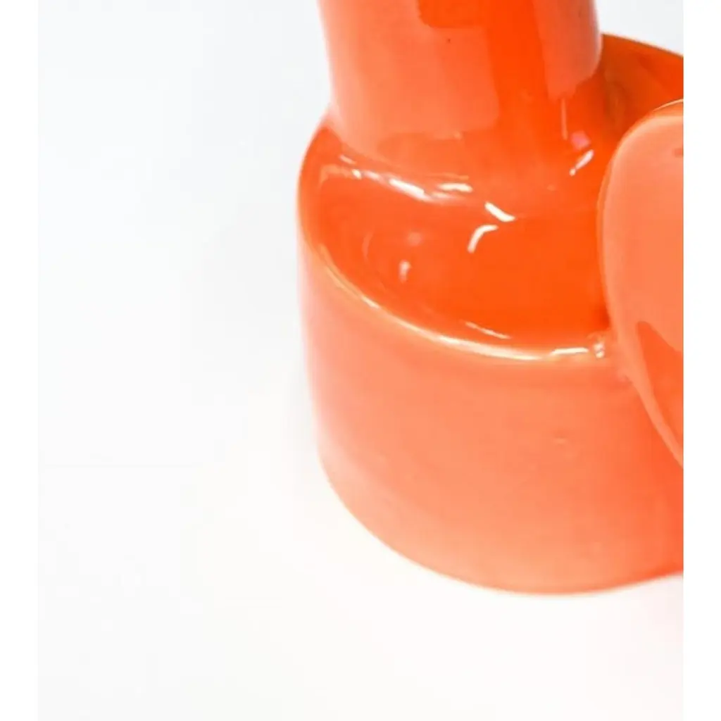 Pavo Jug in Shiny Orange Glazed Ceramic by Eguiarte & EguiarteMaterials: Ceramic.Dimensions: D 26 x W 12,5 x H 20 cm.Available in different ceramic color options. The capacity of this jug is 350 ml. Please contact us.The Eguiarte’s Laboratory was born in 2018, while Miguel Eguiarte was studying Industrial Design at the Universidad Del Valle de México in Guadalajara, Jalisco.Miguel showcases his design conception and industry practices through the union of radical design and his roots in contemporary Mexico, creating pieces such as ceramics, furniture, and everyday products made from various materials.He finds the archeological legacy of Mexico and its dormant relationship to modernity, such as the architecture, local manufacturing, and spiritual perception of these elements, fascinating.His radical design embodies this language in every piece: the abstraction, the color, the form, the material, and the visual perception of an inhabited space, offering us both utilitarian and decorative alternatives for the people.Currently, their work is divided into two catalog sections: "Cotidianos" and "Mobiliario para una nueva década", where we can find pieces like Pelota (ceramic jug) and the side table made of steel, glass, and aluminium.