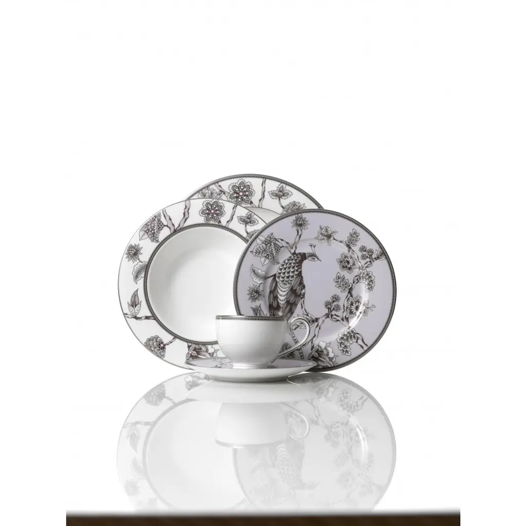 Prouna Fine Bone China specializes in creating tabletop items that combine fine English bone china with Swarovski Elements crystals, for a look that's both festive and refined. Every Prouna item is hand painted with 24kt gold or platinum. Prouna Jewelry marries the beauty of fine bone china dinnerware with the sparkle of Swarovski Crystal Elements. Sculptural white china serves as an elegant base to hand-painted designs, gold and platinum ornamentation and dazzling arrays of Swarovski crystals. With several patterns to choose from, each with its own unique story, you're sure to find one you love. The crystals are attached with a special method that is tested dishwasher safe. A true marriage of technology and style, Prouna Jewelry Dinnerware is the height of luxury.