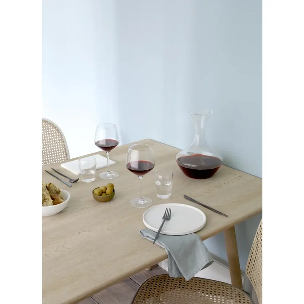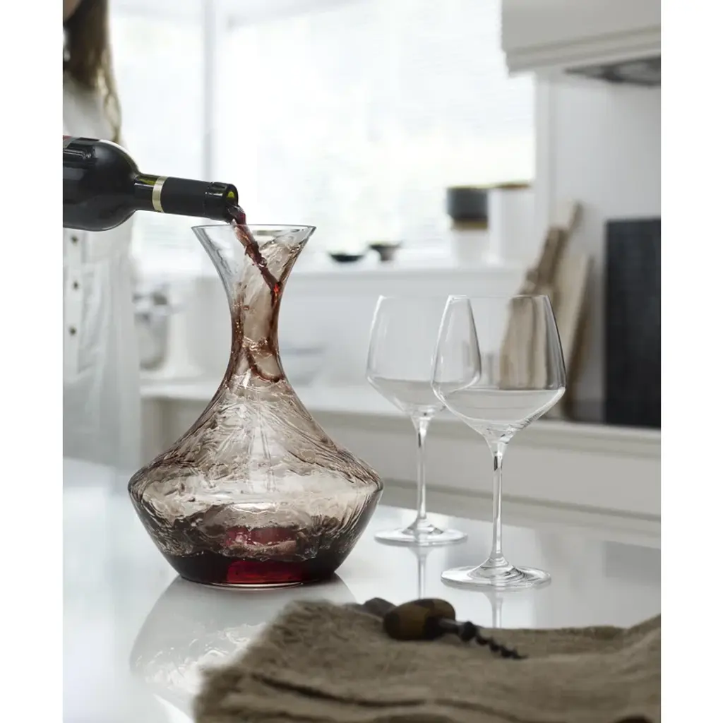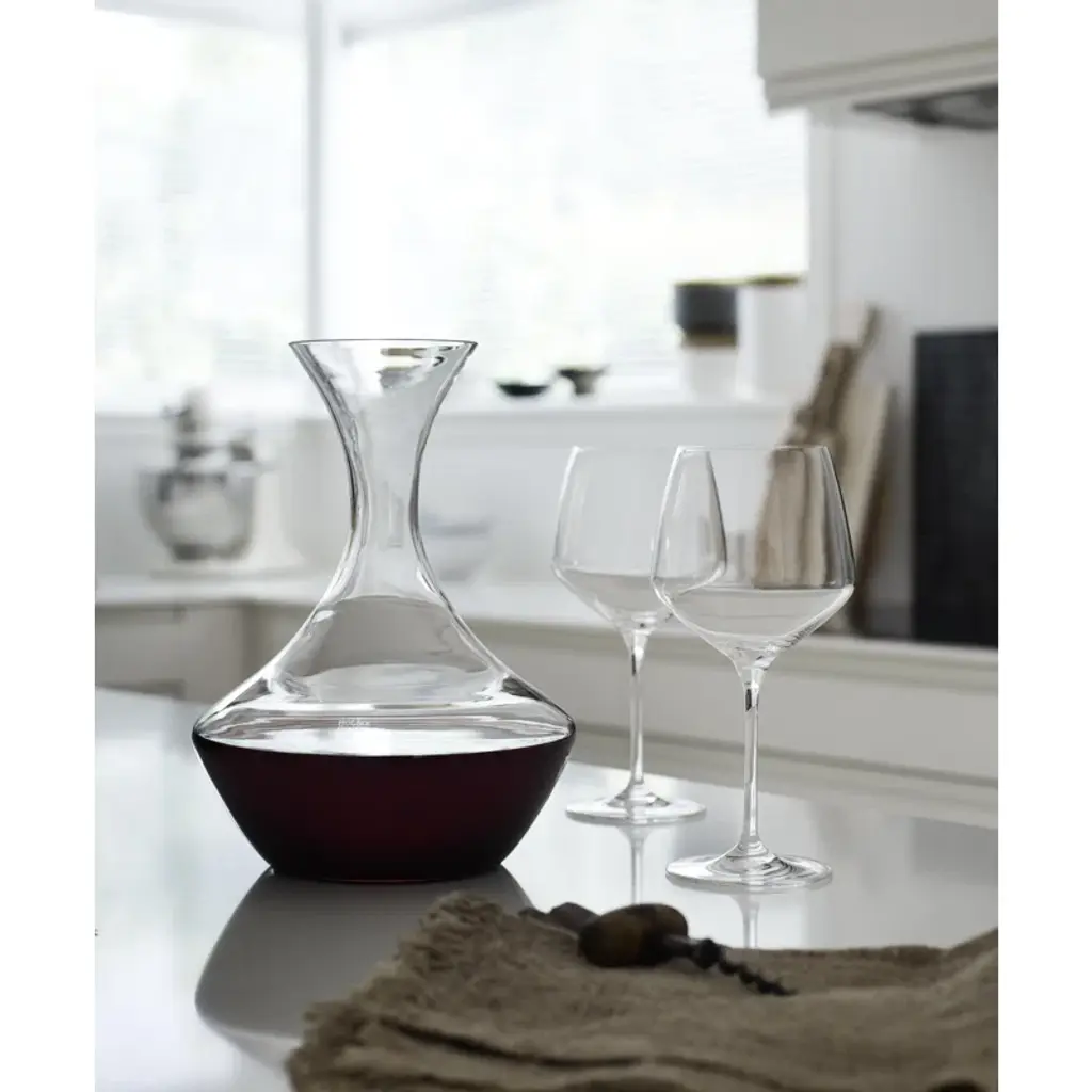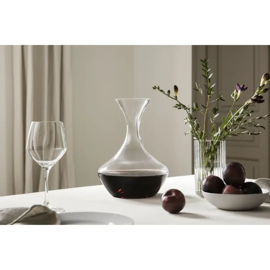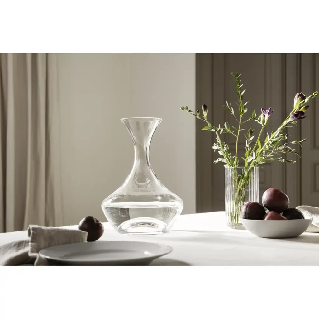 Decanting wine into a carafe unfolds the full potential of the wine, but also elevates a young everyday wine to a more interesting taste experience. Tom Nybroe has created perfection to focus on the most practical and gentle treatment of the wine. When you pour the wine along the narrow neck of the carafe, the wine is flung around by centrifugal force and is deposited in a millimeter-thin layer on the inside of the carafe for efficient oxidization. A great gift idea and simply a must for a wine-tasting evening.