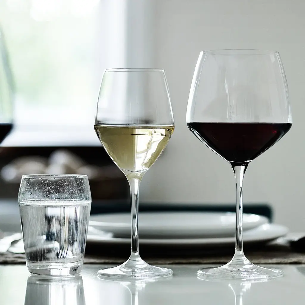 The white wine glass with a volume of 32 cl has been created for most white wines with nuances of tart fruit that are best tamed over a slightly smaller surface Tom Nybroe has created Perfection to focus on the best and most gentle treatment of the wine The line on the glass helps you to pour the correct amount of wine up to the widest point of the glass Also ideal for serving dessert and fortified wines that require more room in the glass Gift box with six glasses A great gift idea – not least for achieving the perfect wine experience.