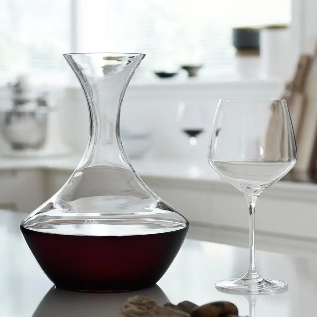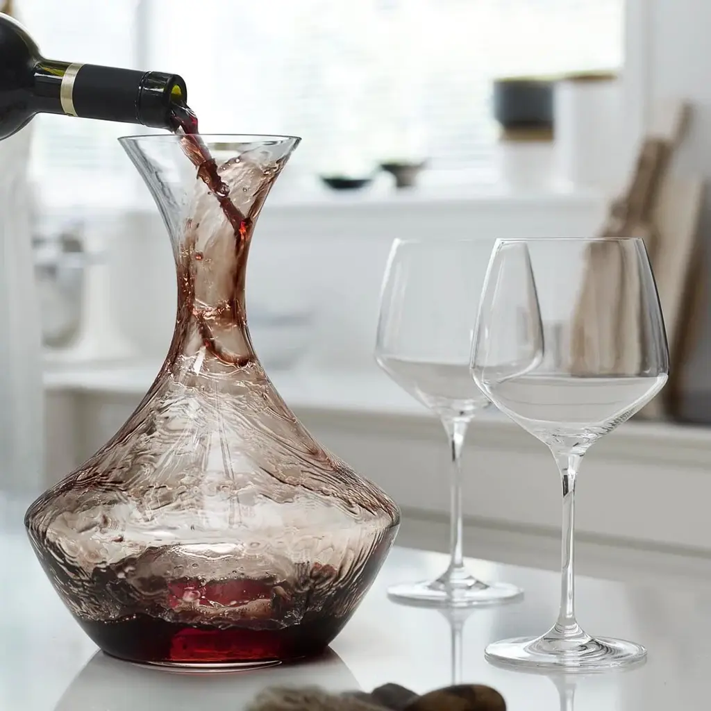 Decanting of wine into a carafe unfolds the full potential of the wine, but also elevates a young everyday wine to a more interesting taste experience Tom Nybroe has created Perfection to focus on the most practical and gentle treatment of the wine When you pour the wine along the narrow neck of the carafe, the wine is flung around by the centrifugal force and is deposited in a millimetre-thin layer on the inside of the carafe for efficient oxidisation A great gift idea – and simply a must for a wine tasting evening