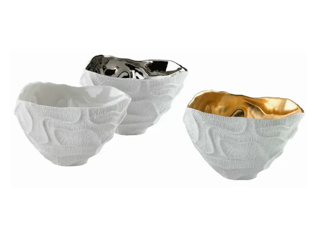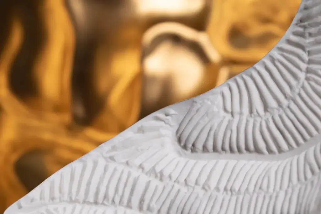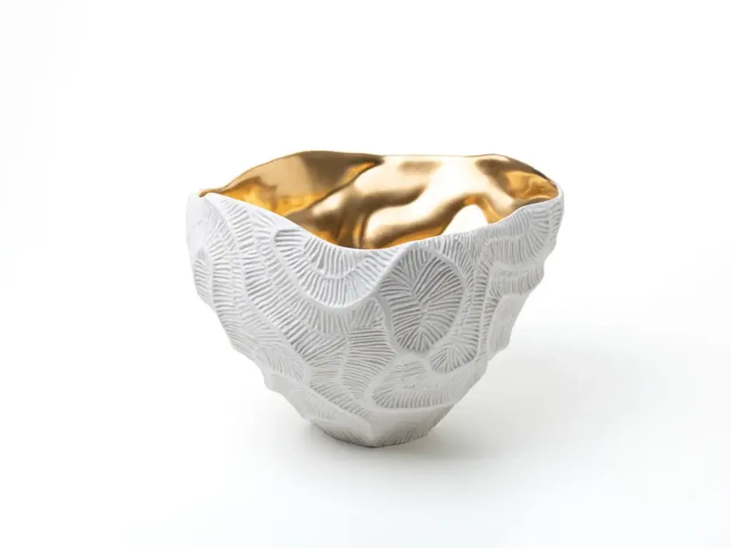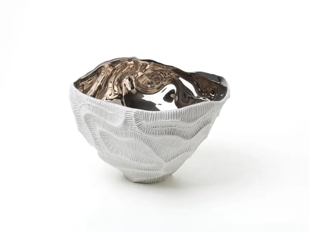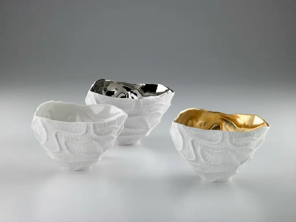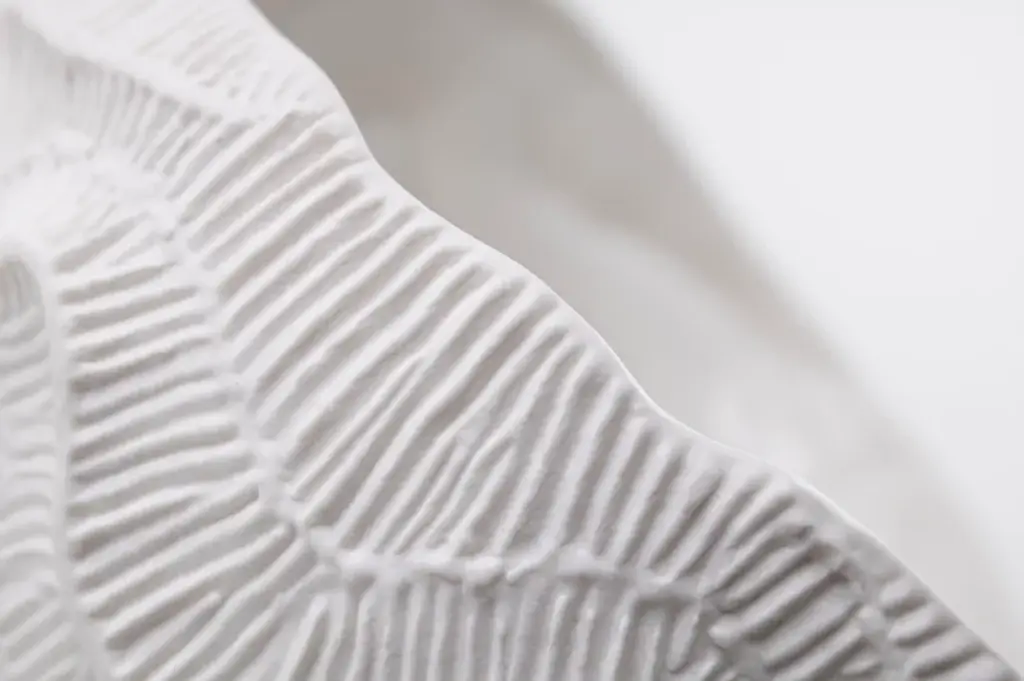 FOSSILIA - A dense minute texture, referring to fossils of madrepores, acts as a skeleton for vases, bowls and bottles. FOSSILIA Collection by FOS Ceramiche evokes the surfaces of ocean floor and lunar craters, distant worlds that share the fascination for the unknown. Texture is the real protagonist of this collection, in a sophisticated play of light and dark enhanced by the use of unglazed porcelain.