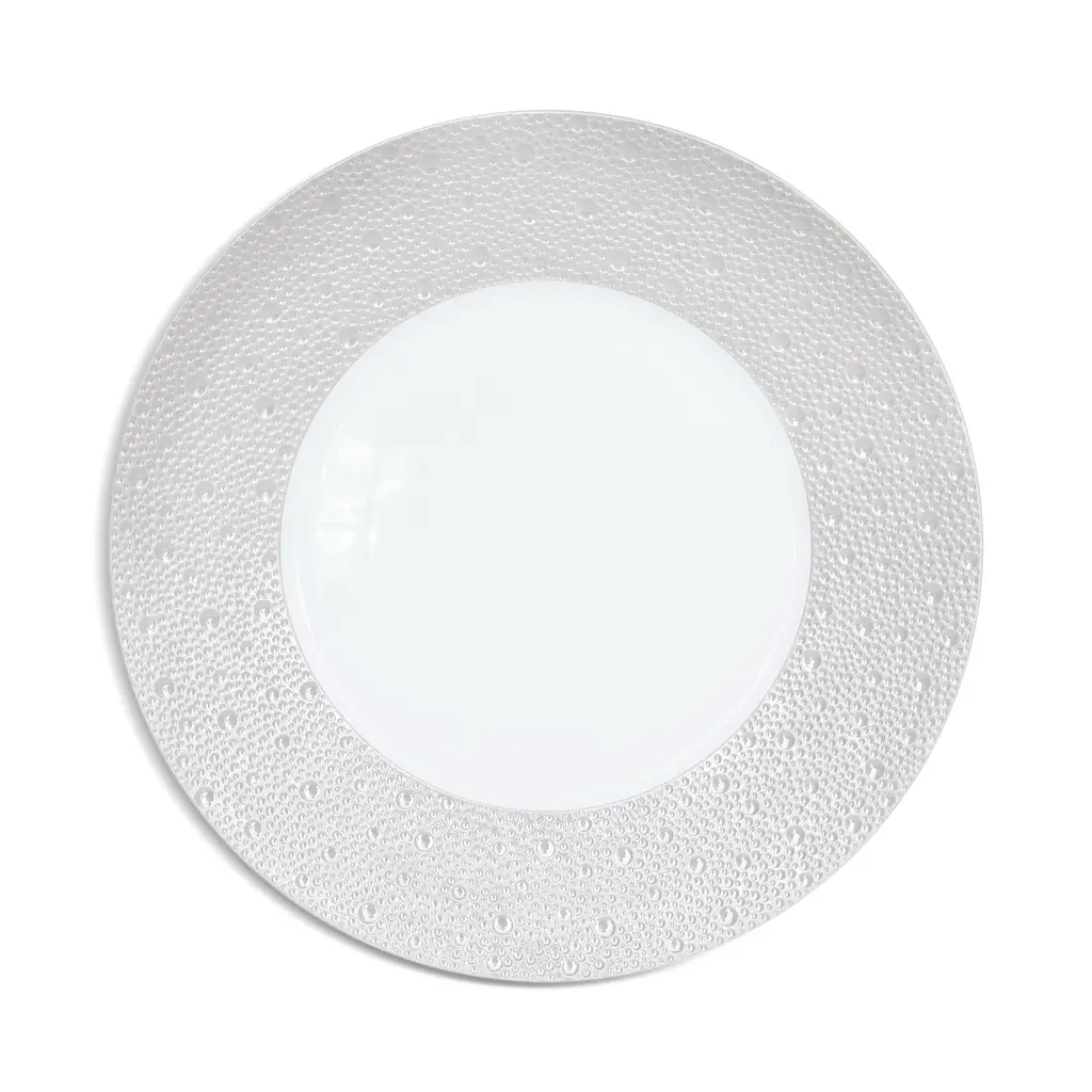 The refined beauty of natural pearls informed this elegant white porcelain dinnerware from L'Objet.