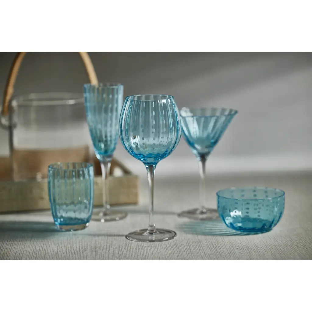 Pescara White Dot Wine Glasses, Set Of 4 - Aqua Blue