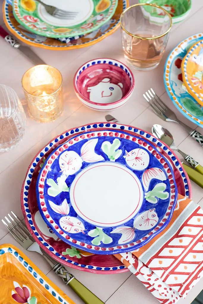 Handcrafted in Italy, this salad plate is made of terracotta and decorated with a hand-painted fish-and-algae motif in vivid hues.
