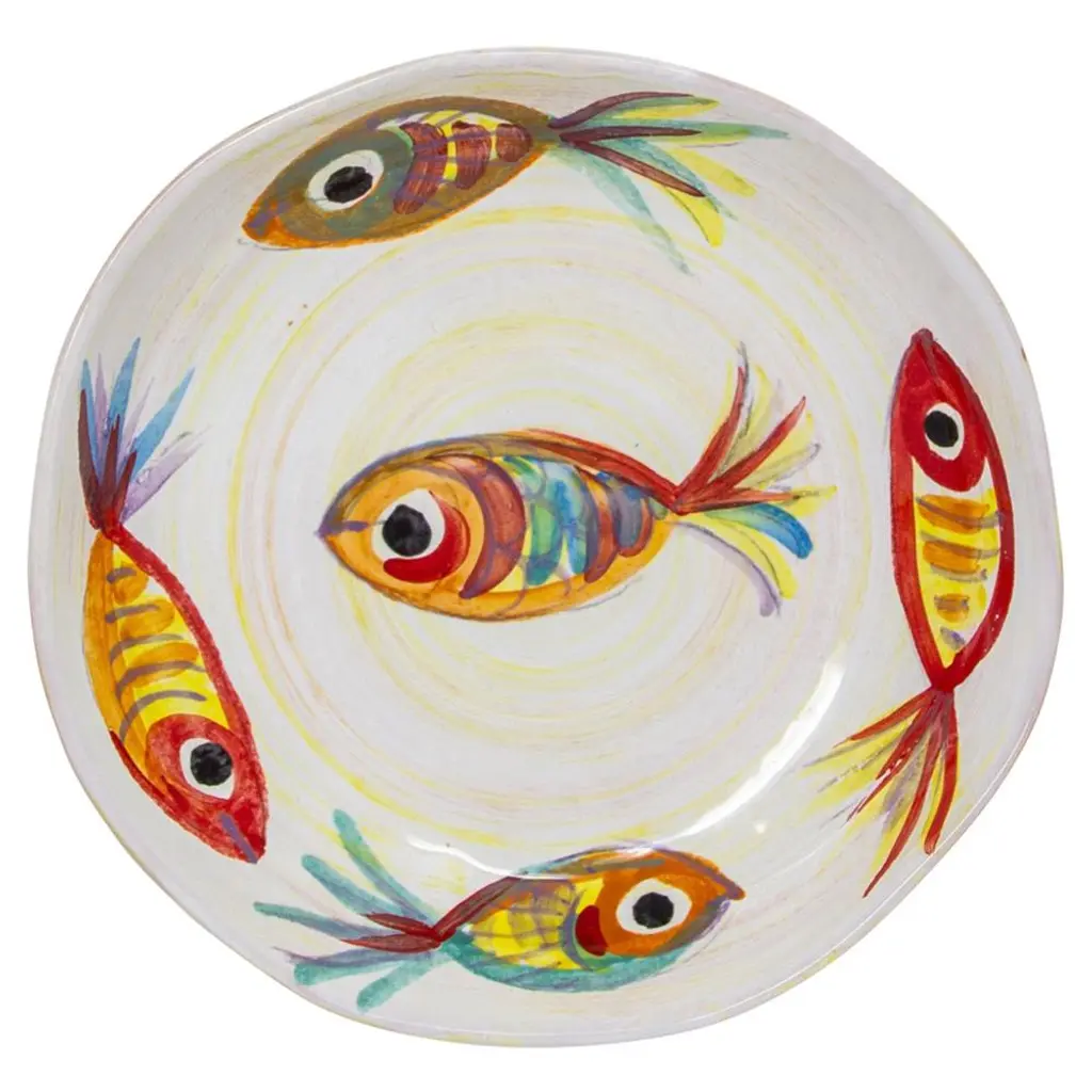 Pesci Colorati Coastal Beach White Ceramic Multicolor Fish Pasta Bowl