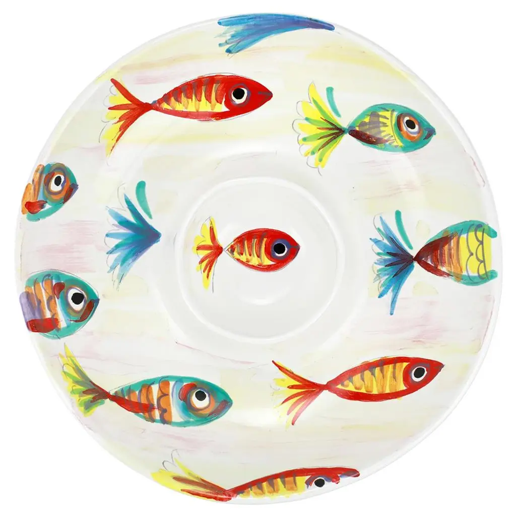 Pesci Colorati Coastal White Ceramic Multicolor Fish Chip And Dip Platter
