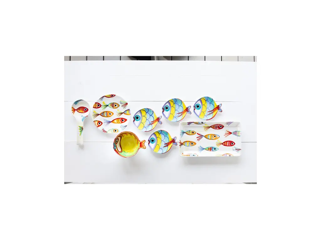 Create a vibrant seascape with VIETRI's Pesci Colorati Collection. The joyful earthenware line features handpainted designs inspired by the bright and colorful fish of the Mediterranean.