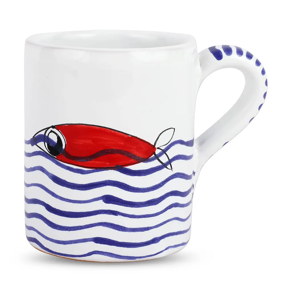 A traditional school of fish was the original inspiration for the Pesci Colorati Mug. Our maestro artisans put their signature spin on the design with layers of color in handpainted detail to add variety and texture. Since 1983, Vietri has specialized exclusively in Italian handcrafted ceramics, stainless and pewter flatware, mouth blown glassware, lamps, urns and planters. Families of artisans with 3 or 4 generations of history create these special pieces using centuries-old techniques. The subtle color from a paintbrush and the curving stroke of the artist's hand are never repeated in quite the same way, making each piece truly unique.