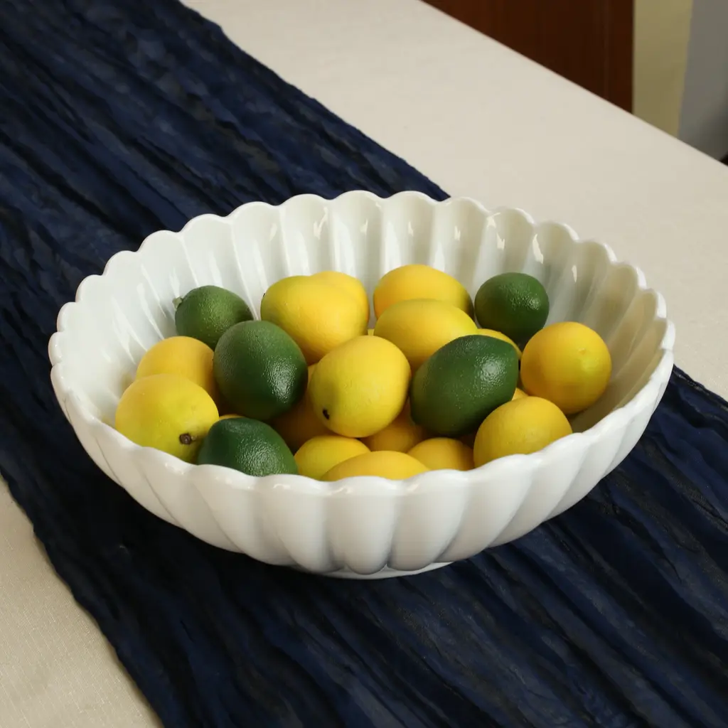 Elevate your table setting with the BIA Cordon Bleu Set of 2 Petal Round Serving Bowls. This classic white porcelain serveware features a scalloped design with an embossed petal pattern, perfect for both casual or fine dining occasions. Ideal for buffet-style meals, entertaining, special events, and everyday use, these versatile bowls can be mixed with other colors for a customized look. Each bowl has a generous capacity of 3.75 qt. and measures 11.75" in diameter. Microwave and dishwasher safe, these bowls offer convenience and style for all your serving needs. BIA Cordon Bleu: Designed With Modern Sensibility For Wherever You Live, However You Cook, And Whenever You Entertain.