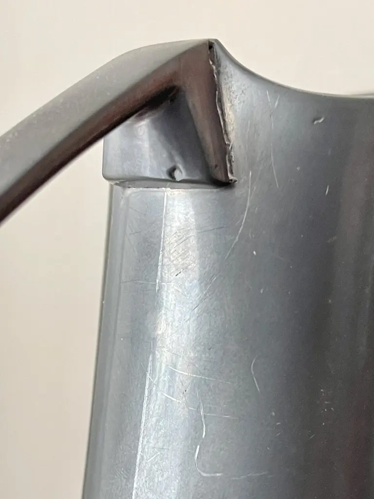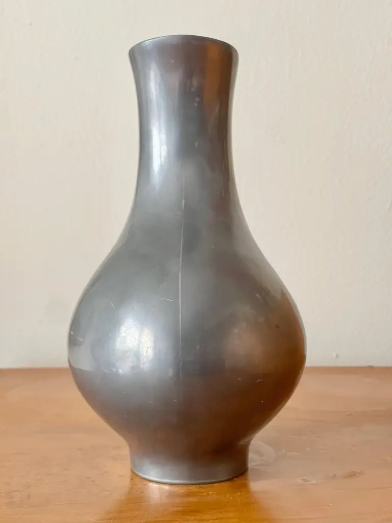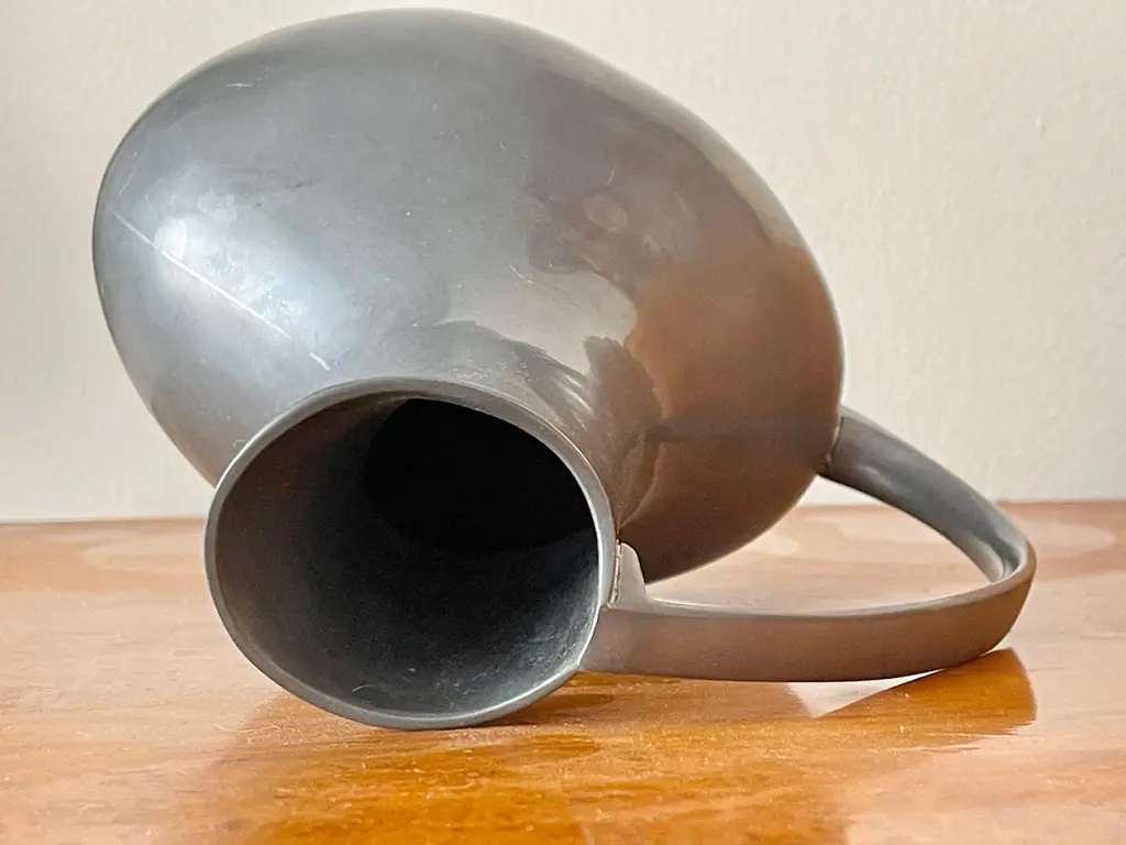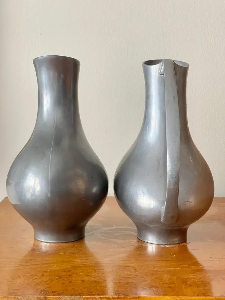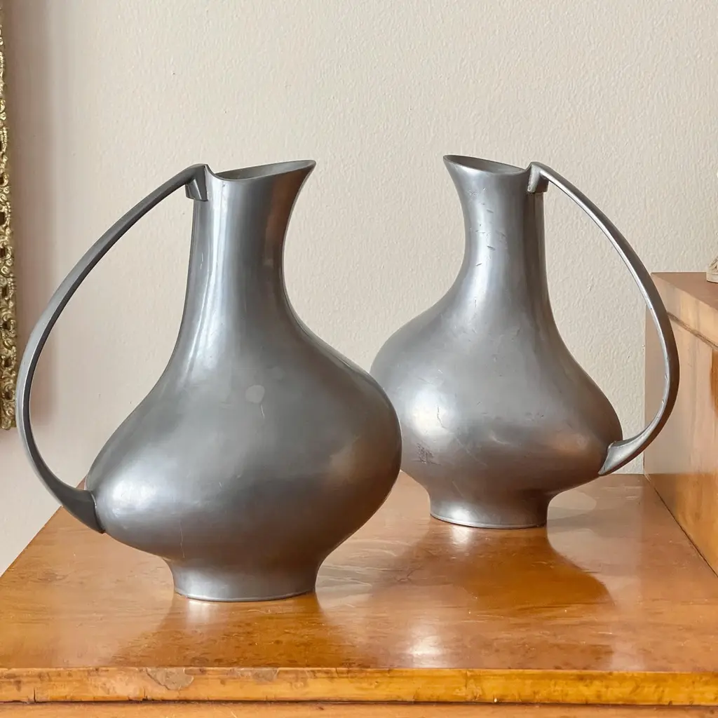 Sculptural mid-century pewter handled pitcher in the style of the "Pregnant Duck" model No. 992 by master silversmith, Henning Koppel for Georg Jensen.No markings and unknown origin.Two available. Priced per.