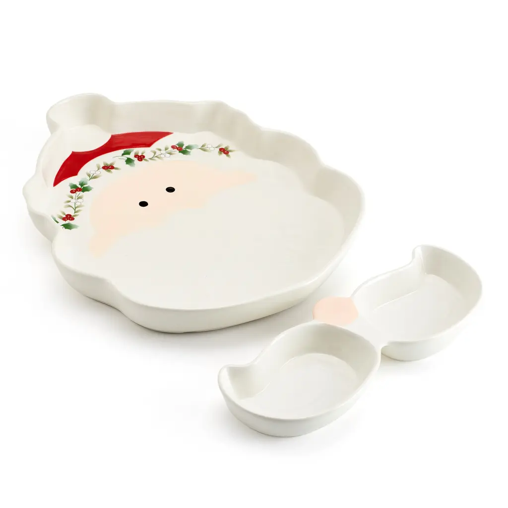 Pfaltzgraff Winterberry Santa Platter With Dip Bowl, 12 Inch - Multi - 2 Piece