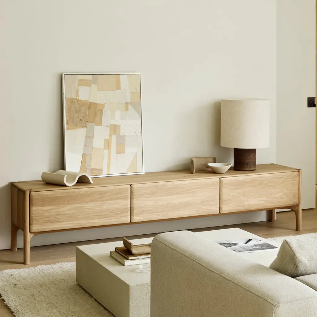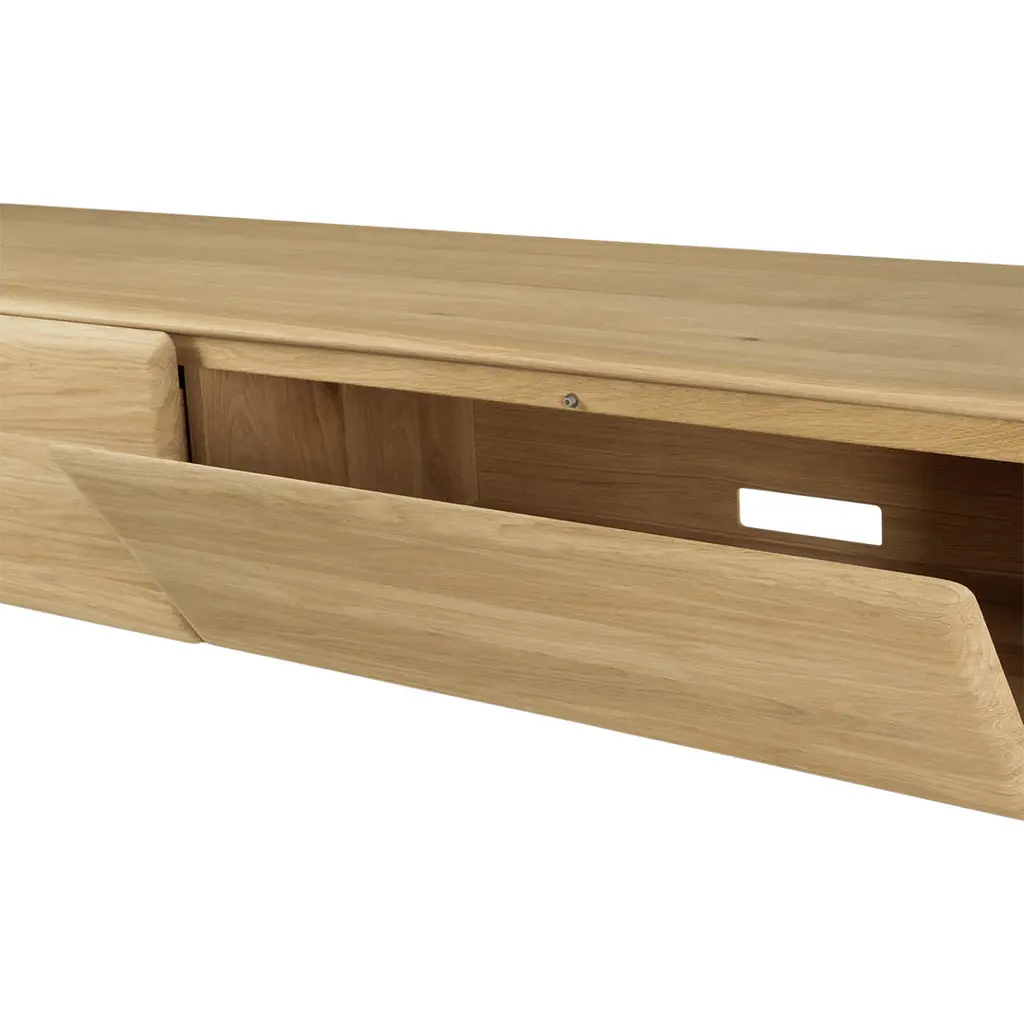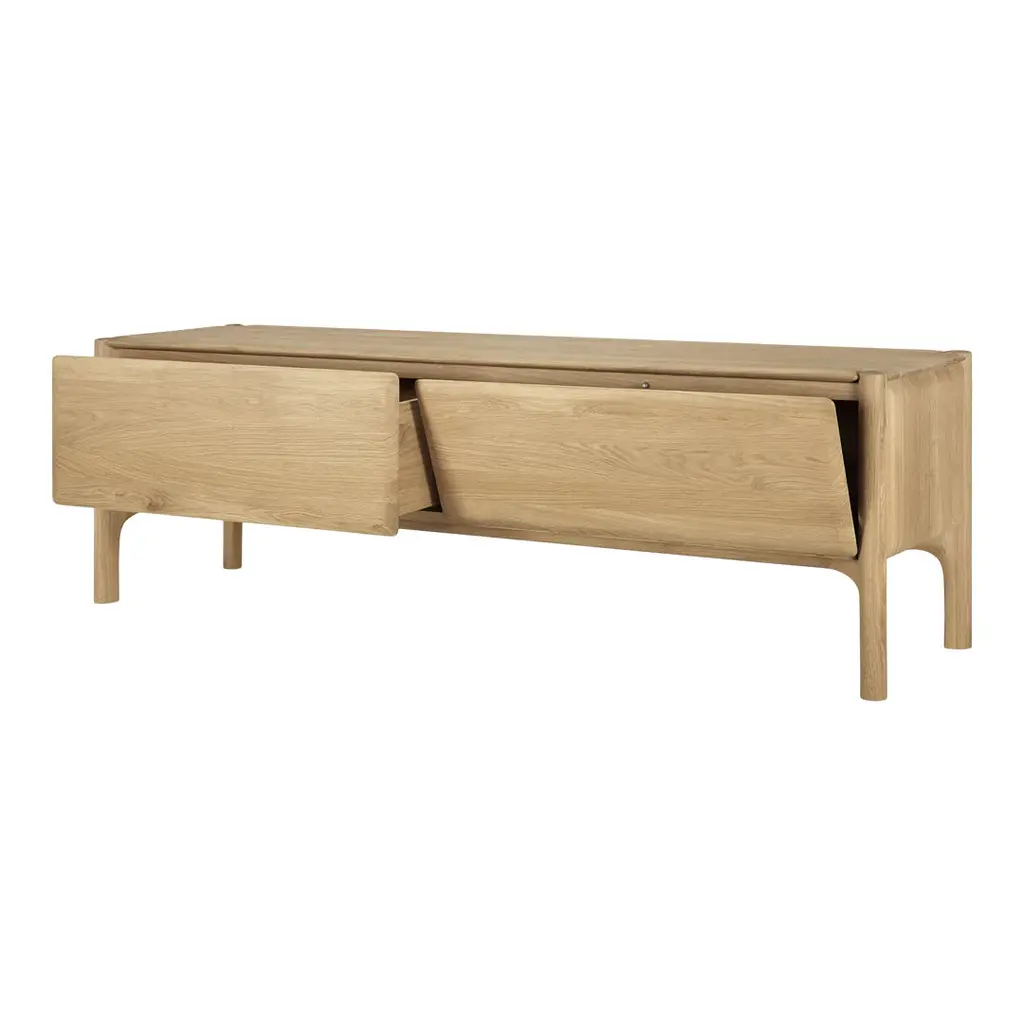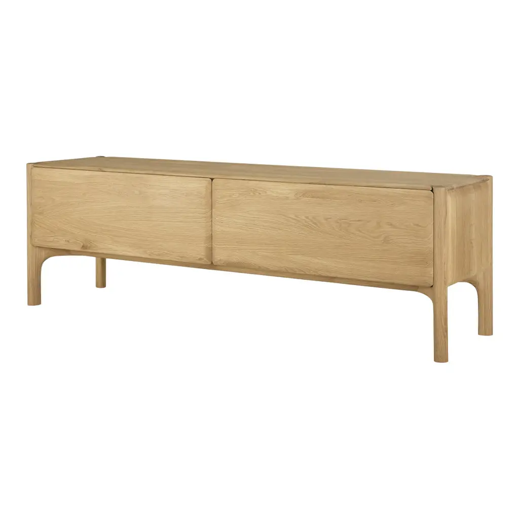 The PI collection honors nature’s design by keeping the strength, curves and lines, as nature intended. Interesting shapes are discovered in this sleek and stylish, polished imperfect, finish. Each PI item is finished by hand to ensure that the individual character of the wood is respected. The PI TV cupboard is striking and unique, with practical storage to complement the lounge space.