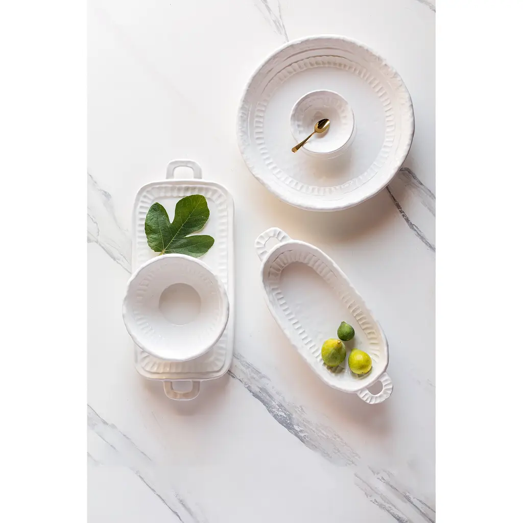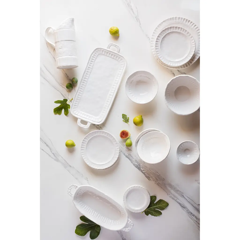 Paying tribute to the architectural details of Florence, Italy, during the Renaissance, VIETRI's Pietra Serena is designed for gracious dining and entertaining. The collection's stoneware pieces are characterized by the simplistic beauty of their handpressed edges.