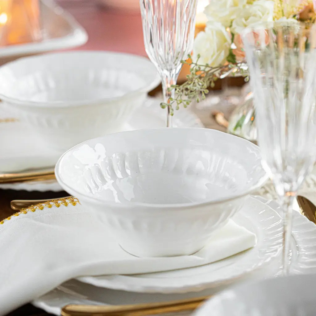 Characterized by its hand-pressed edges, VIETRI's Pietra Serena Collection pays tribute to the architectural details of Florence, Italy, during the Renaissance. Its name, meaning serene stone, is reflected in the simplistic beauty of its design. The collection features handcrafted dinnerware and serving pieces for everyday use as well as entertaining.