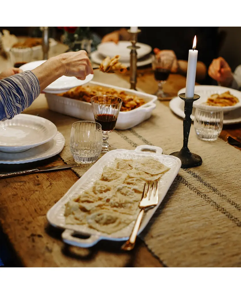 Characterized by its hand-pressed edges, VIETRI's Pietra Serena Collection pays tribute to the architectural details of Florence, Italy, during the Renaissance. Its name, meaning serene stone, is reflected in the simplistic beauty of its design. The collection features handcrafted dinnerware and serving pieces for everyday use as well as entertaining.