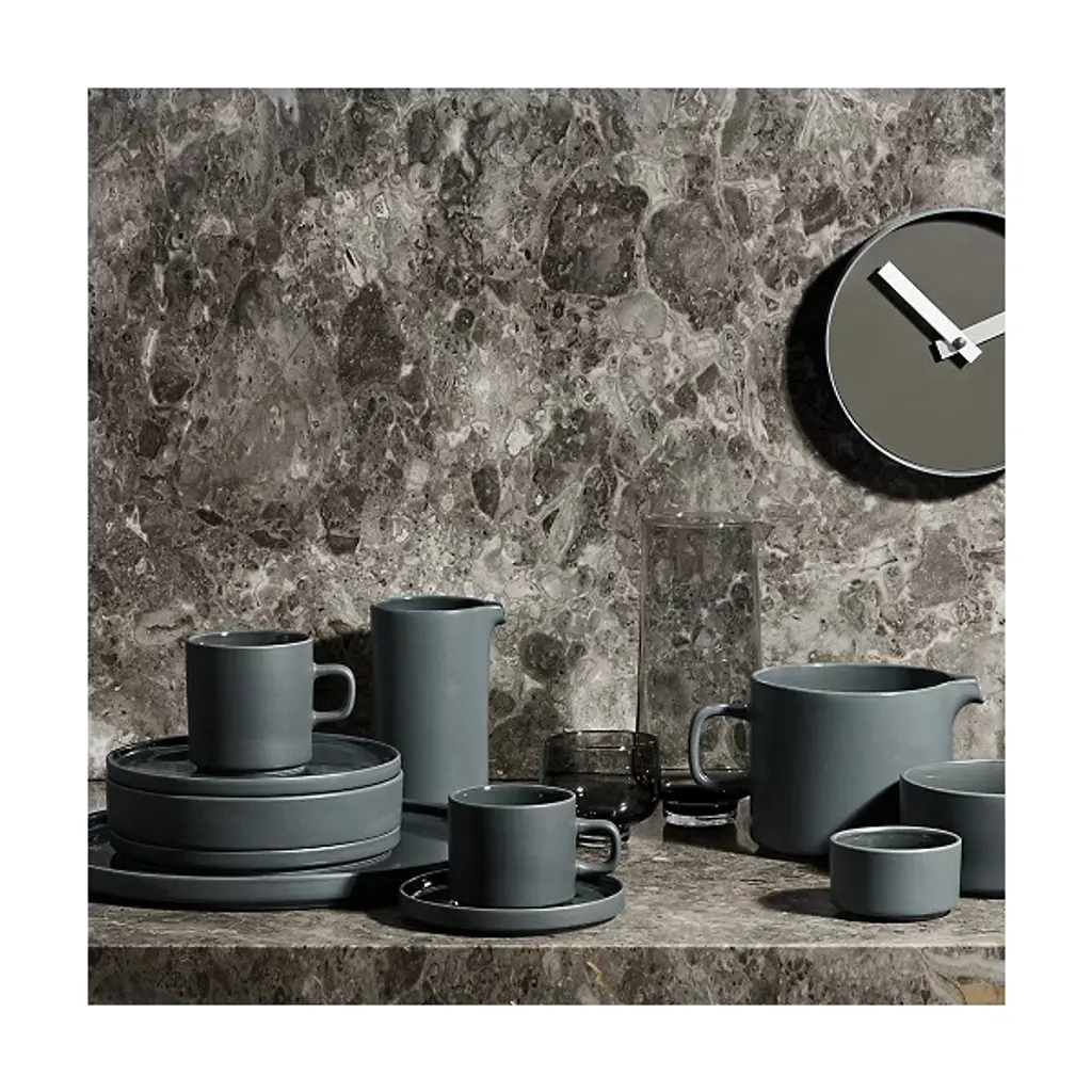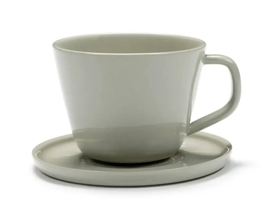 Pour yourself a cup of something warm with the Blomus PILAR Coffee Cups with Saucer, Set of 2, a matte-textured contemporary set of serveware. The saucers are elegant but unobtrusive, flaring up into a generous rim that provides a visual contrast with the simple cylindrical cups that rest on them.