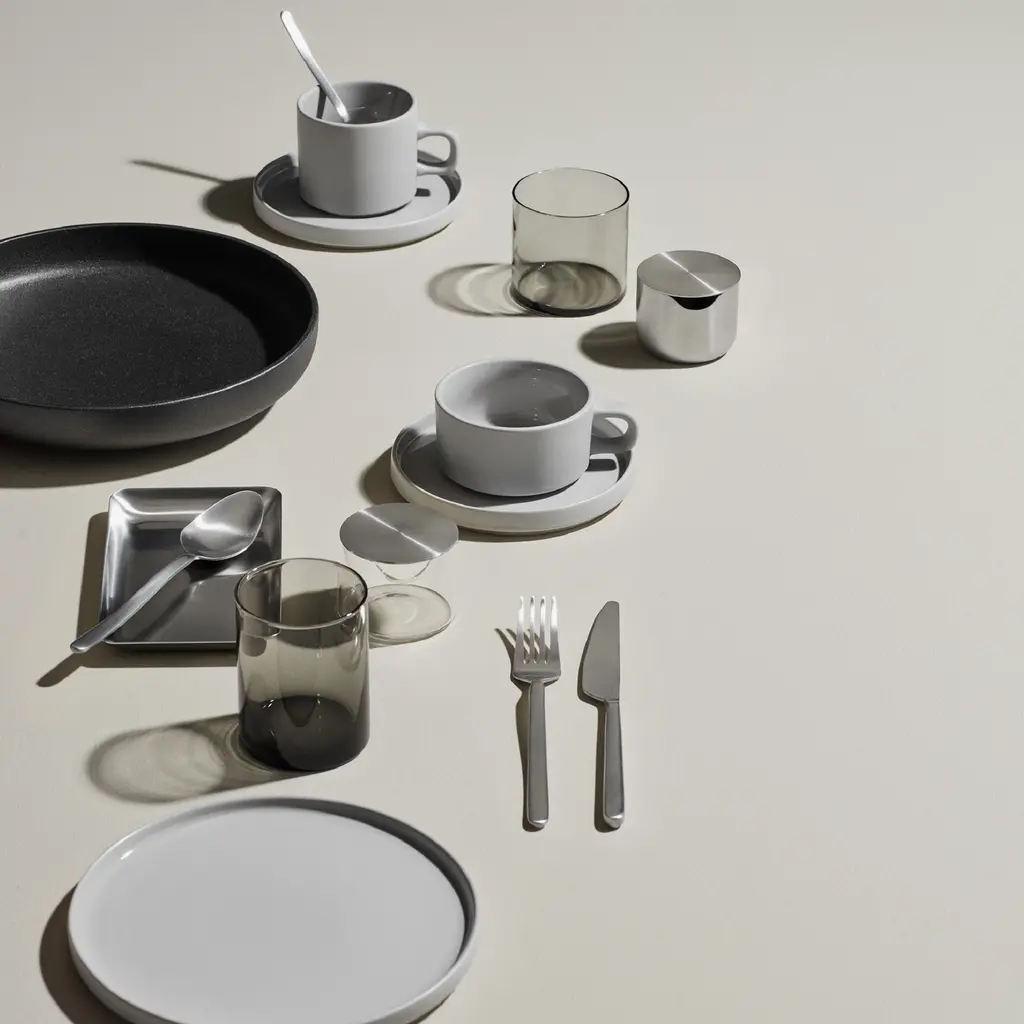 The PILAR tableware collection was designed by Floz Design in Germany. Stoneware pieces include bowls, plates, mugs and serve ware. The full range comes in four matching colors: moonbeam, agave green, mirage grey & pewter. Start setting the table with your own unique color combinations. Stacks beautifully for in-cabinet storage. Outside of stoneware is matte. Inside serving area is glazed for design compliment and easy cleaning. PILAR stoneware is manufactured from clay, quartz and minerals such as calcite and is defined as a ceramic product. The stoneware is molded at very high temperatures using casting techniques. The high temperatures during the firing process make stoneware more stable than clay and less translucent than porcelain.