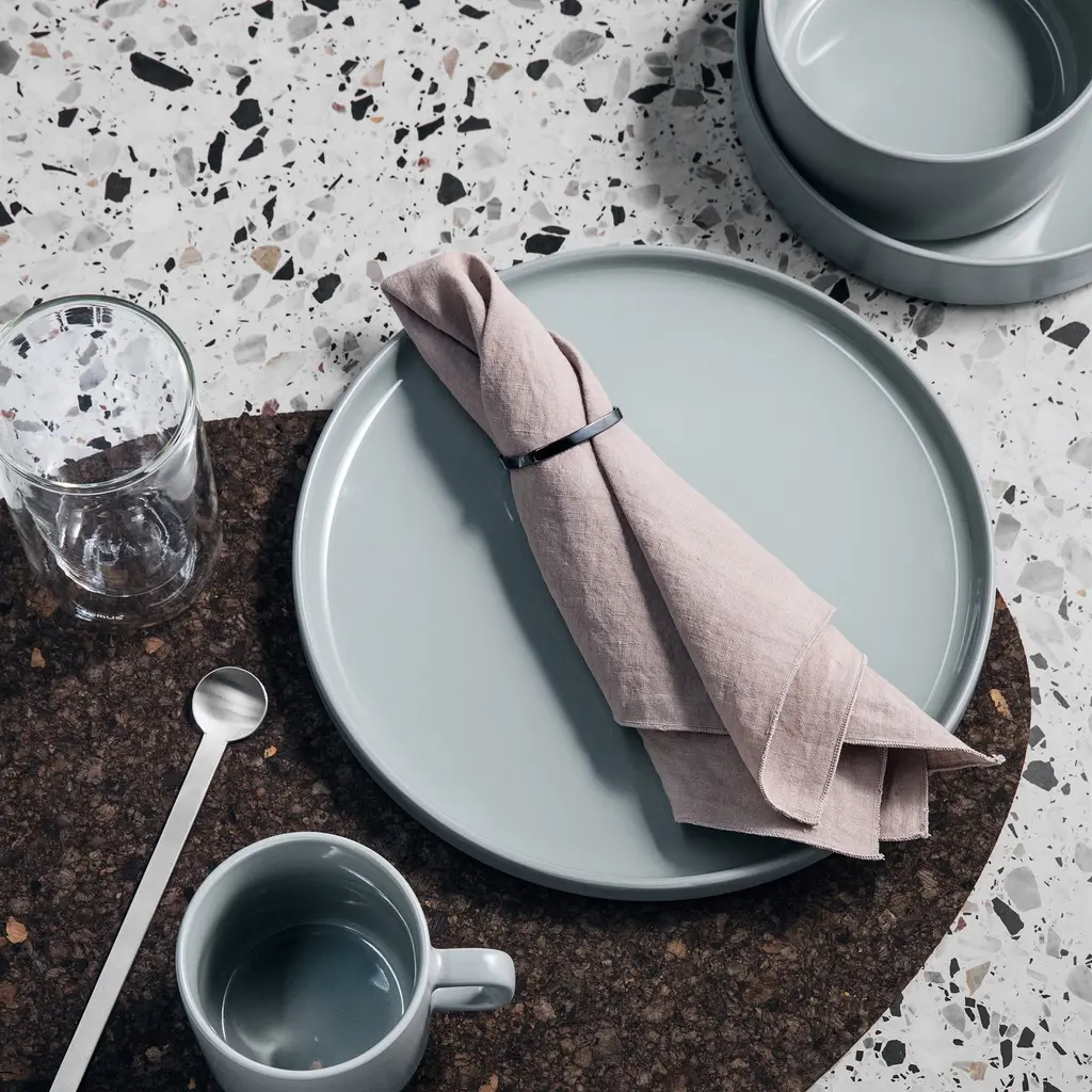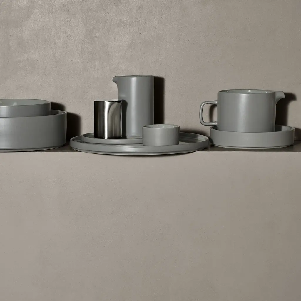 The PILAR tableware collection was designed by Floz Design in Germany. Stoneware pieces include bowls, plates, mugs and serve ware. The full range comes in four matching colors: moonbeam, agave green, mirage grey & pewter. Start setting the table with your own unique color combinations. Stacks beautifully for in-cabinet storage. Outside of stoneware is matte. Inside serving area is glazed for design compliment and easy cleaning. PILAR stoneware is manufactured from clay, quartz and minerals such as calcite and is defined as a ceramic product. The stoneware is molded at very high temperatures using casting techniques. The high temperatures during the firing process make stoneware more stable than clay and less translucent than porcelain.