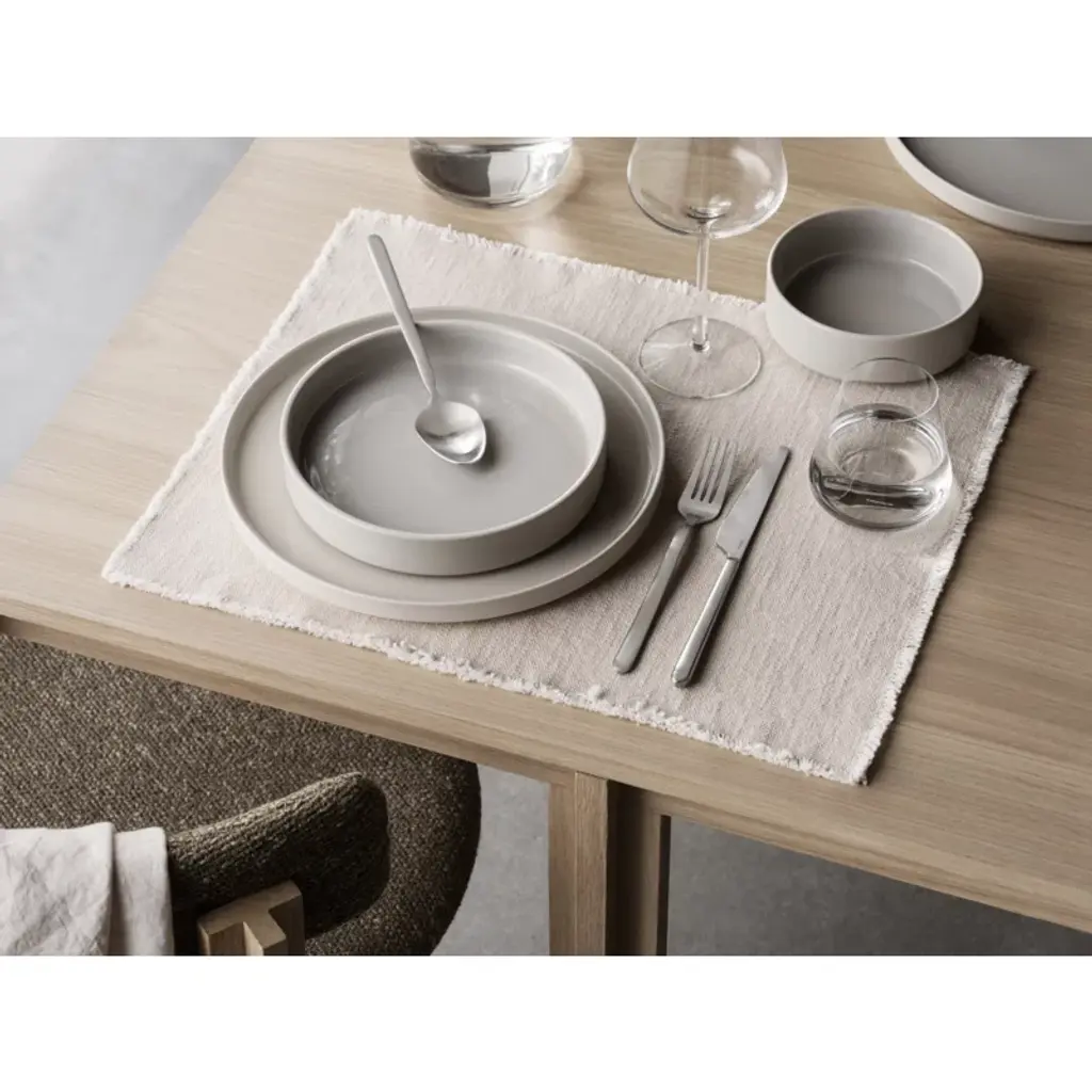 Clean eating. This dinner plate features a raised lip that’s designed to help it stack neatly, for tidier cabinets and minimalist open shelves. Crafted from dishwasher-safe stoneware, it’s glazed inside and matte outside, emphasizing its organic texture while staying easy to wash. Set of four.